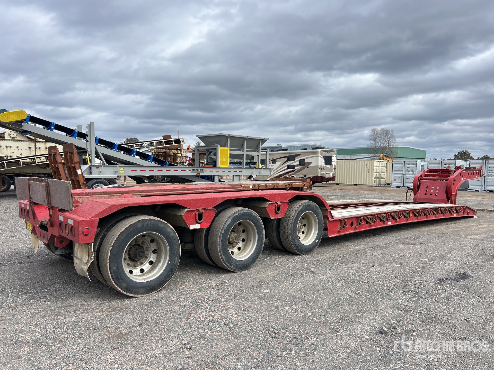 Hydraulic Removable Gooseneck, 25 ft x 102 in Main Deck, Folding Side Extensions, Air Ride Suspension