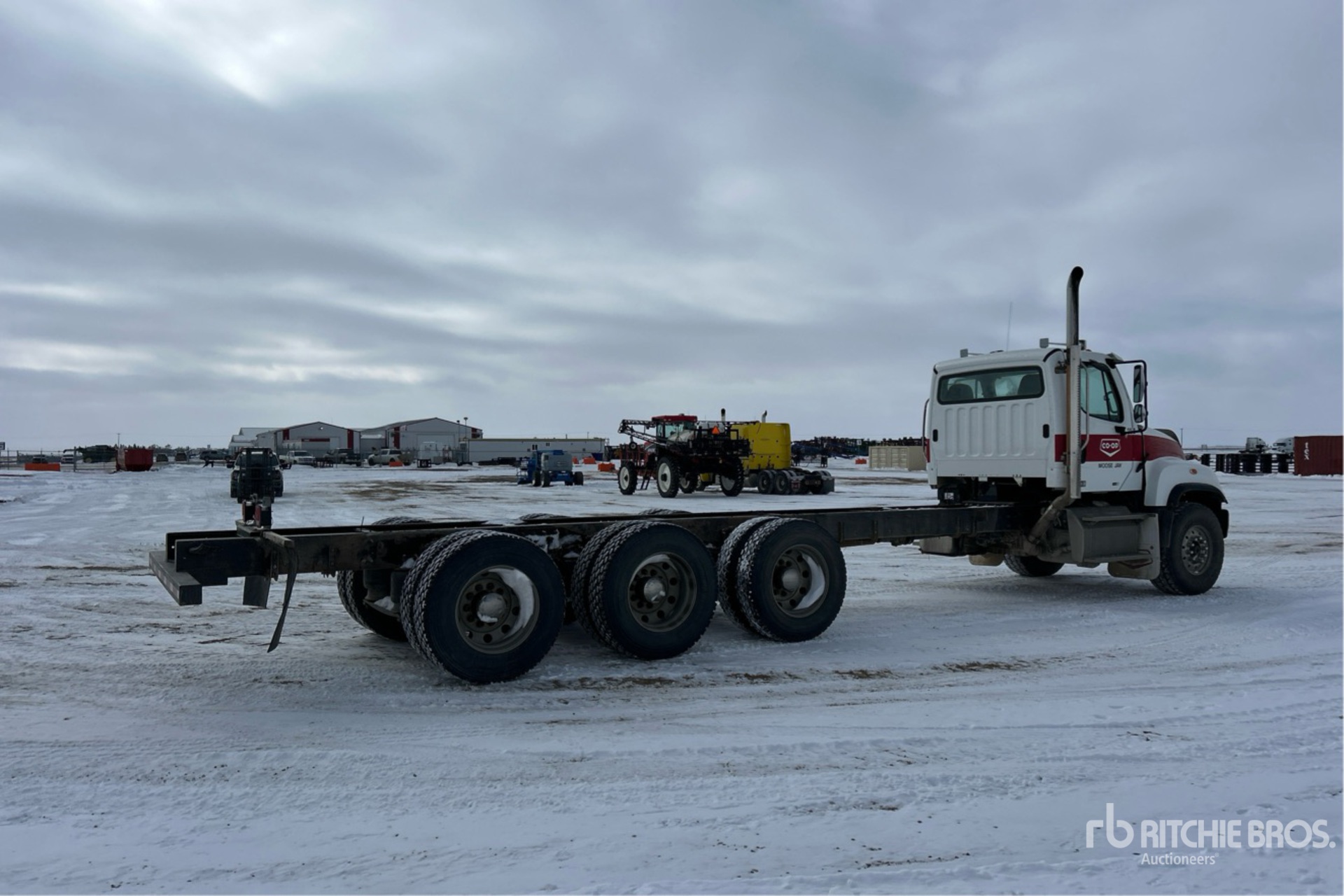 Located in Lane 2 Spot 39, Detroit DD13 6 Cylinder 12.8 L Diesel 470 hp Engine, 2013 US EPA Label, CARB Compliant, Requires Diesel Exhaust Fluid, Positive Air Shutoff, 19729 Engine hrs, Engine Brake, Allison 4500 Automatic Transmission, Triple Differential Locks, 20000 lb Front Axle, 60999 lb Rears, Meritor RZ-69-166 Drive Axles, 4.56:1 Axle Ratio, 81000 lb GVWR, Air Ride Cab, Aluminum Wheels, 425/65R22.5 Front Tires, 11R24.5 Rear Tires, Dual Steering Boxes, Double Frame, Air Ride Suspension, 290 in Wheelbase, 207 in Cab to Axle, 348 in Cab to End of Frame