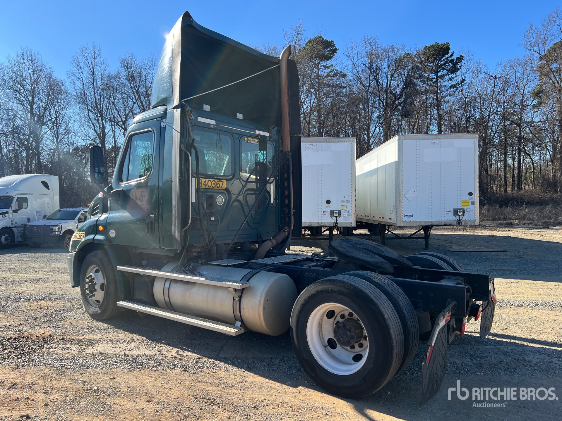 Detroit DD13 410 hp Engine, 2014 US EPA Label, 20580 Engine hrs, Eaton Fuller FRW-15210B 10-Speed Manual Transmission, 12500 lb Front Axle, 23000 lb Rears, 45500 lb GVWR, Engine Brake, 156 in Wheelbase, Air Suspension, 295/75R22.5, Air Sliding 5th Wheel, Dual Fuel Tanks