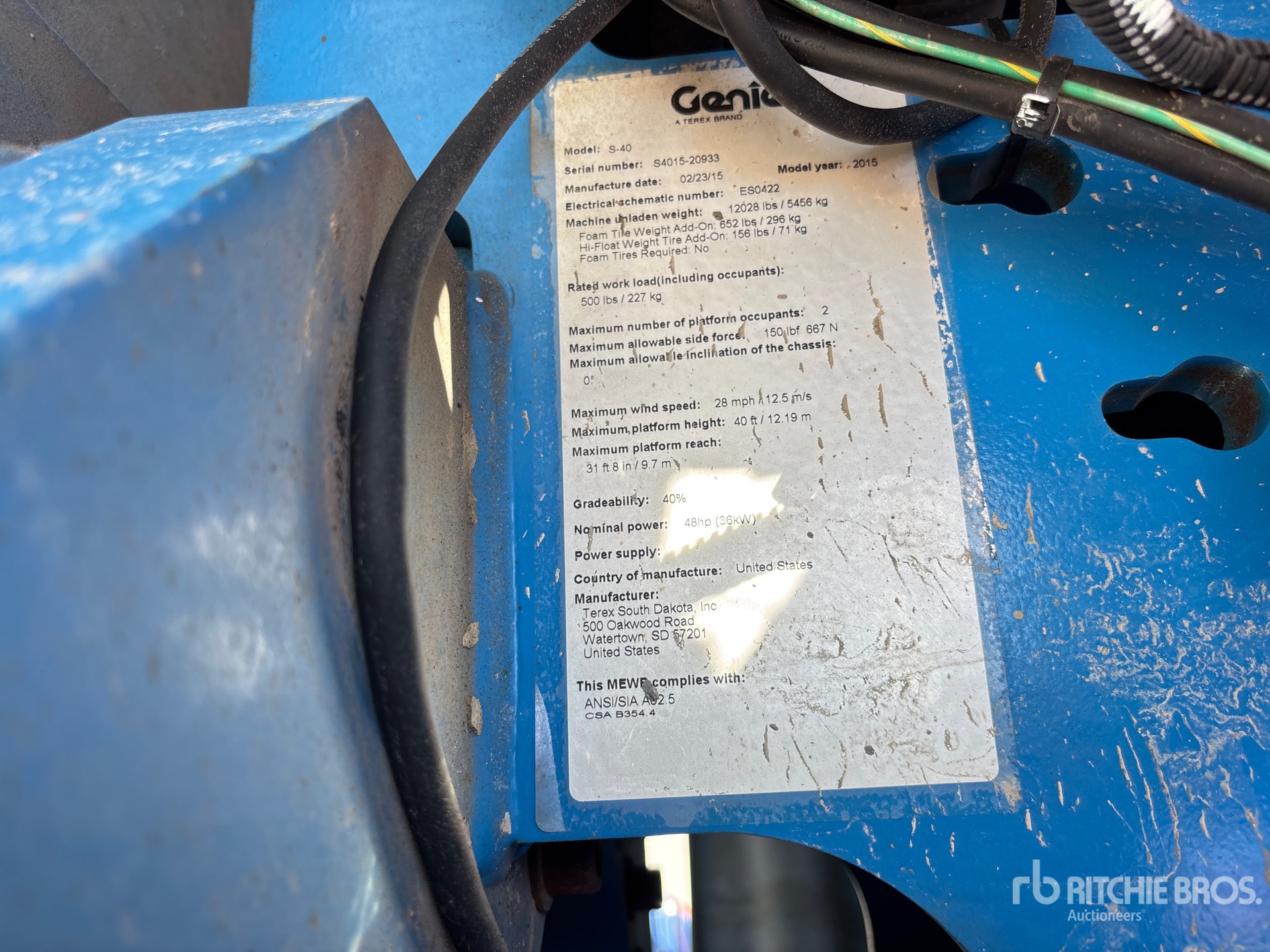 40 ft Max Platform Height, 500 lb Max Weight Capacity, Power to Platform, 2014 US EPA Label, Deutz D2.9 L4 4 Cylinder 49 hp 2.9 L Diesel Engine, 12-16.5 Foam-Filled Tires