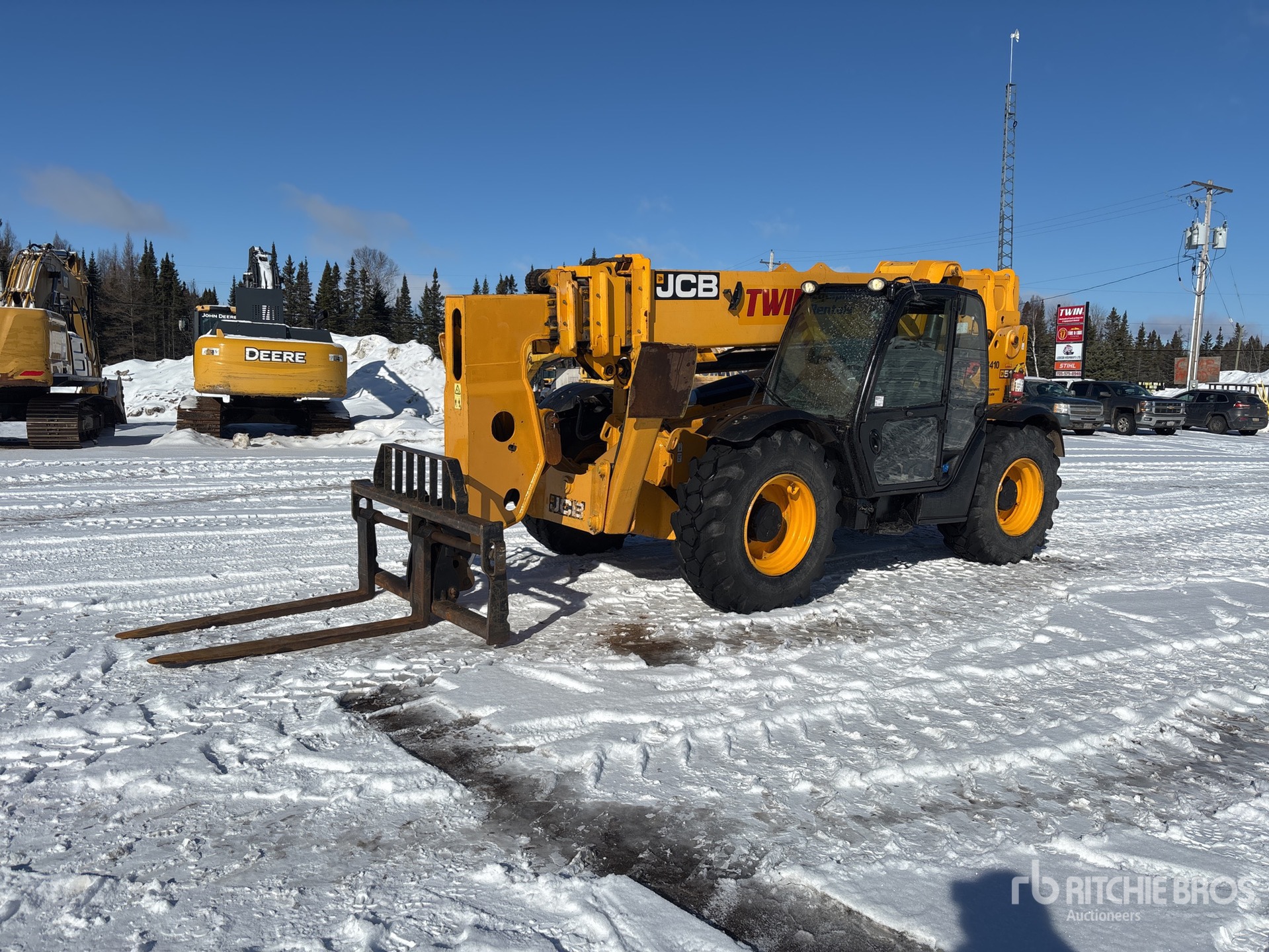 Enclosed Cab, Air Conditioner, 50 ft Max Lift Height, 12000 lb Max Lift Capacity, Requires Diesel Exhaust Fluid, 59 in Forks, Manual Coupler, Outriggers, Frame Leveling, 17.5-25 Tires