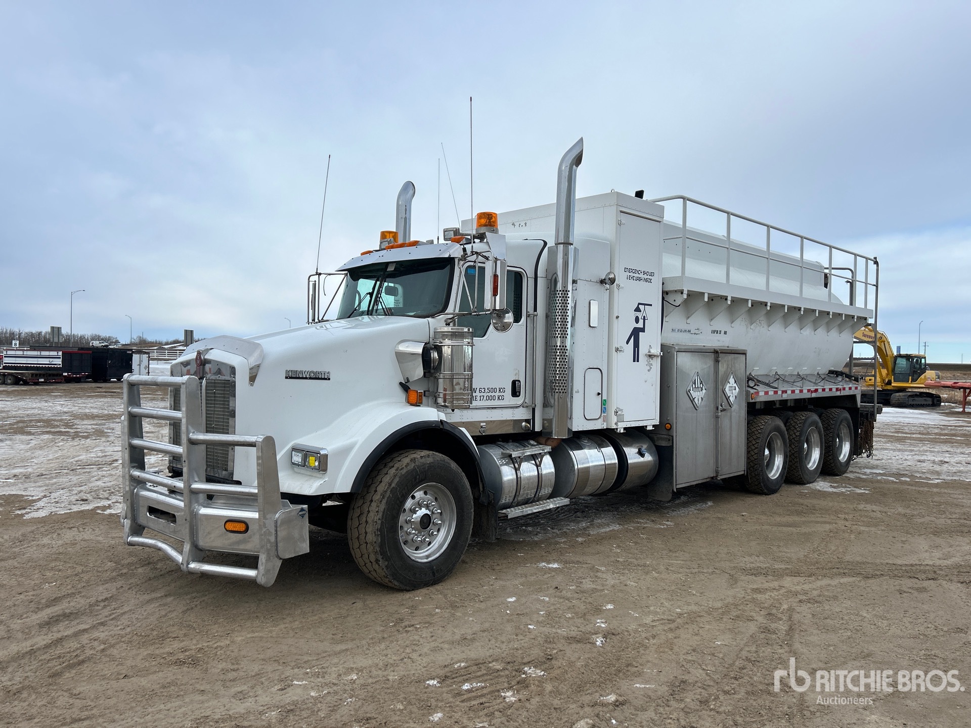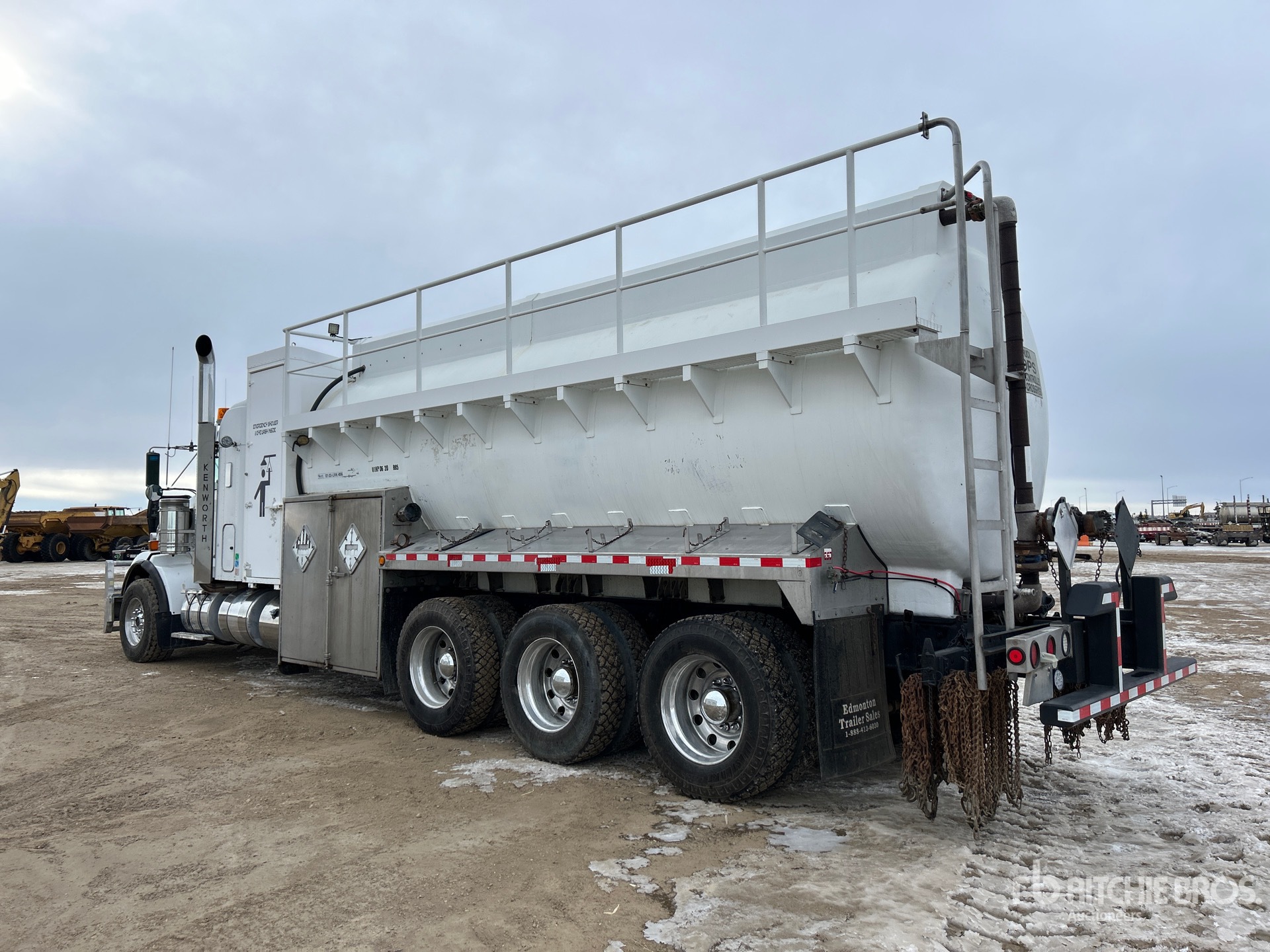Located in Lane 45 Spot 46, Cummins ISX15 6 Cylinder 15 L Diesel 525 hp Engine, Requires Diesel Exhaust Fluid, Positive Air Shutoff, Webasto Engine Coolant Heater, 24518 Engine hrs, Engine Brake, Eaton Fuller RTLO-18918B 18-Speed Manual Transmission, Triple Differential Locks, 19780 lb Front Axle, 64002 lb Rears, Dana T69-170HP Drive Axles, 4.30:1 Axle Ratio, 83782 lb GVWR, Air Ride Cab, 28 in Flat Top Sleeper Cab, Aluminum Wheels, 385/65R22.5 Front Tires, 11R24.5 Rear Tires, Dual Steering Boxes, Double Frame, Neway Air Ride Suspension, 306 in Wheelbase, 2014 Comptank 22670 L Steel Tank, 2 Compartments, TC412 Code, Catwalk w/Guardrails, Pintle Hitch