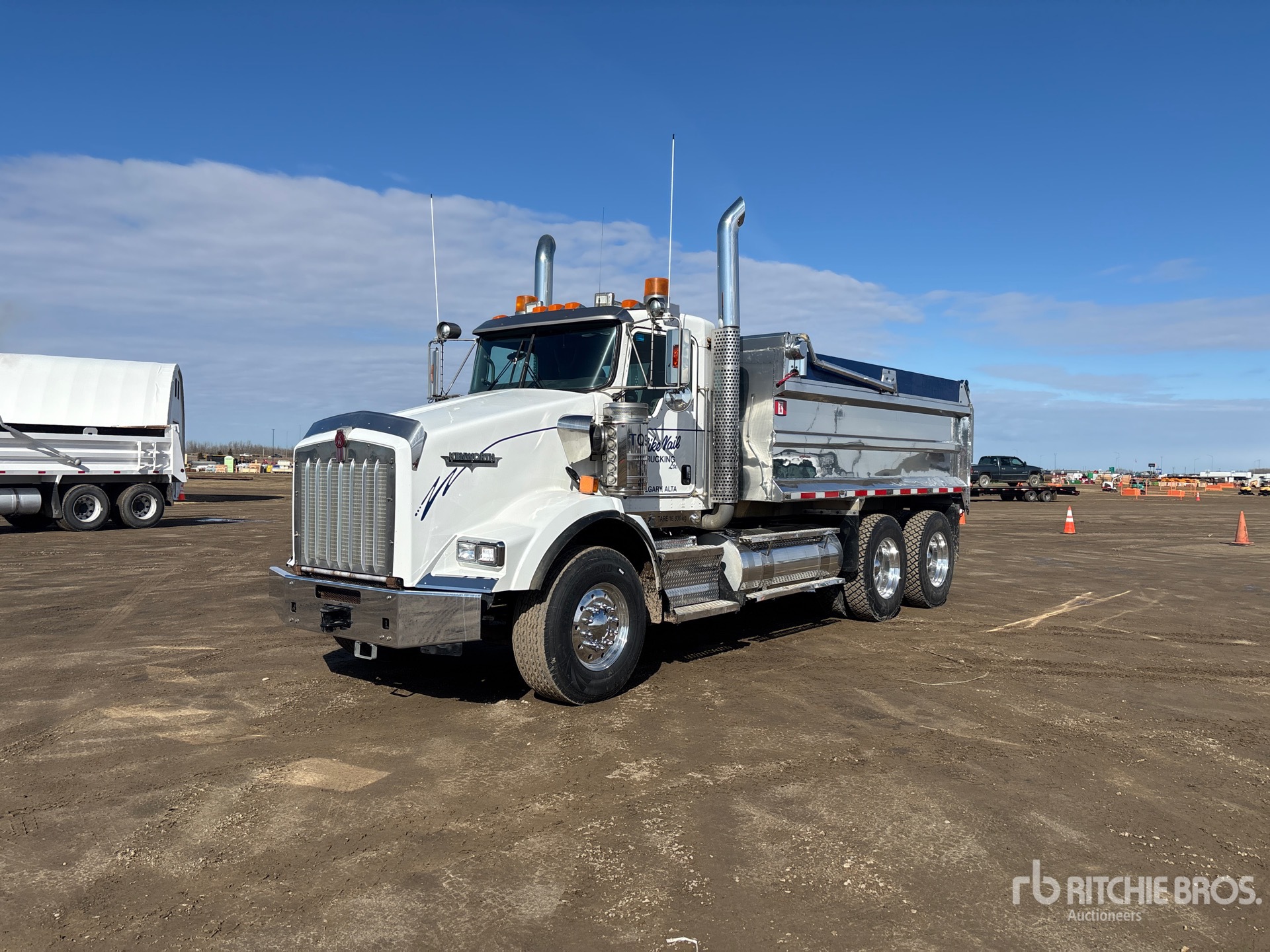 Cummins ISX15 6 Cylinder 15.0 L Diesel 525 hp Engine, 2015 US EPA Label, CARB Compliant, 19031 Engine hrs, Engine Brake, Eaton Fuller RTLO-18918B 18-Speed Manual Transmission, Double Differential Locks, 14600 lb Front Axle, 46000 lb Rears, 60600 lb GVWR, Aluminum Wheels, 385/65R22.5 Front Tires, 11R24.5 Rear Tires, Neway Air Ride Suspension, 213 in Wheelbase, PTO, 15 ft Long x 3 ft 7 in High Aluminium Body, Electric Roll Tarp, Rear Hydraulics, Pintle Hitch