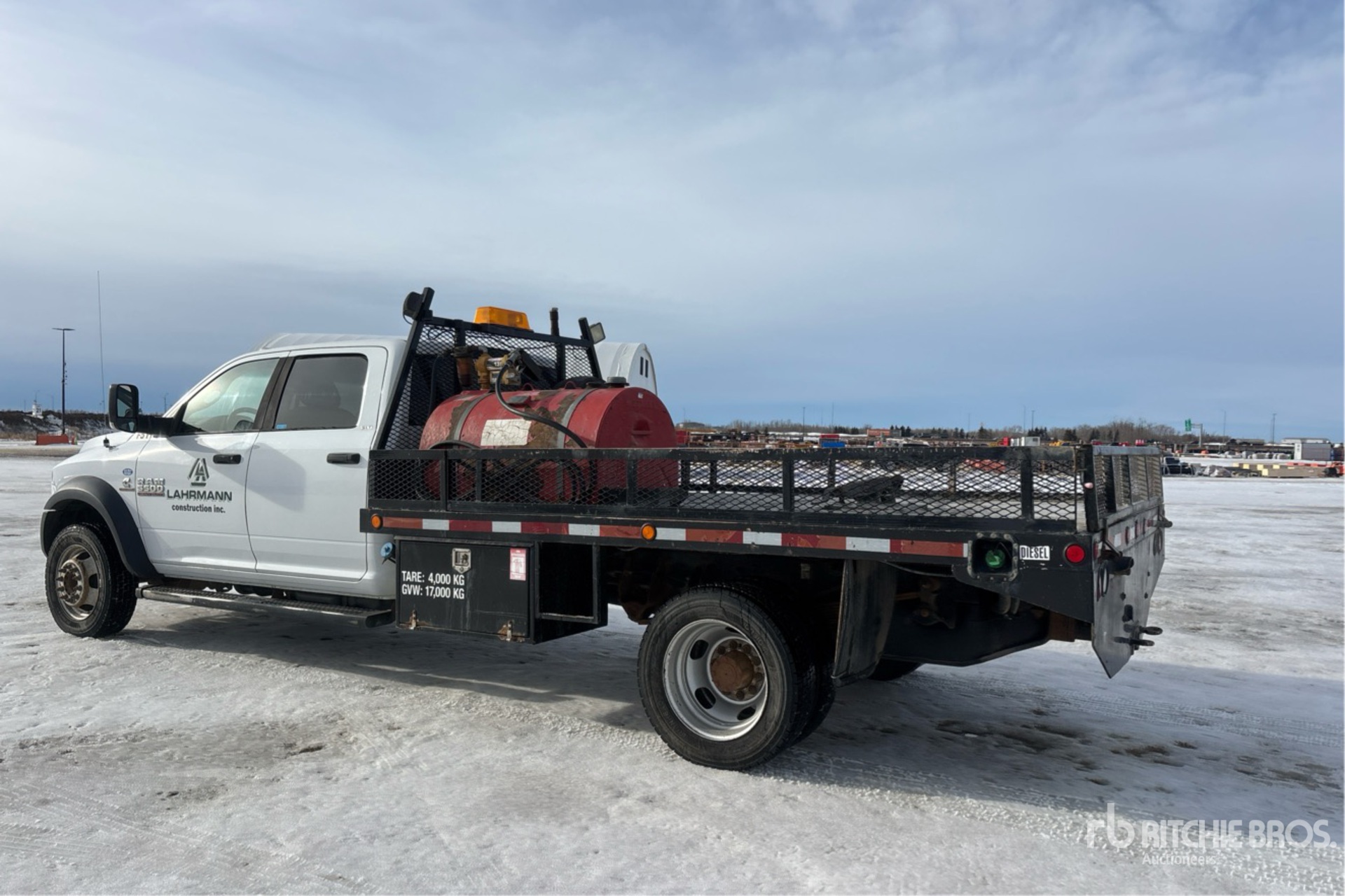 Located in Lane 43 Spot 34, Cummins ISB6.7 6 Cylinder 6.7 L Diesel 325 hp Engine, 2015 US EPA Label, Requires Diesel Exhaust Fluid, 5060 Engine hrs, Exhaust Brake, Automatic Transmission, 7000 lb Front Axle, 13500 lb Rears, 19500 lb GVWR, 225/70R19.5, Spring Suspension, 198 in Wheelbase, 11 ft 8 in x 94 in Bed, Westeel 444 L Fuel Tank /w Pump, 5th Wheel Hitch
