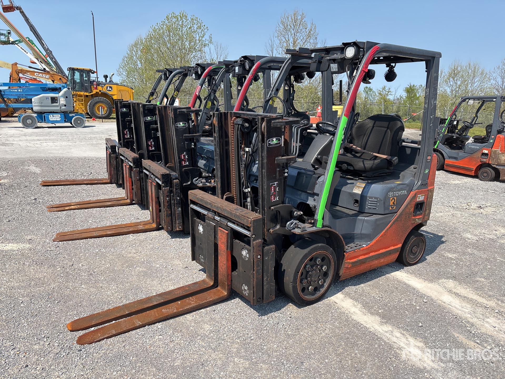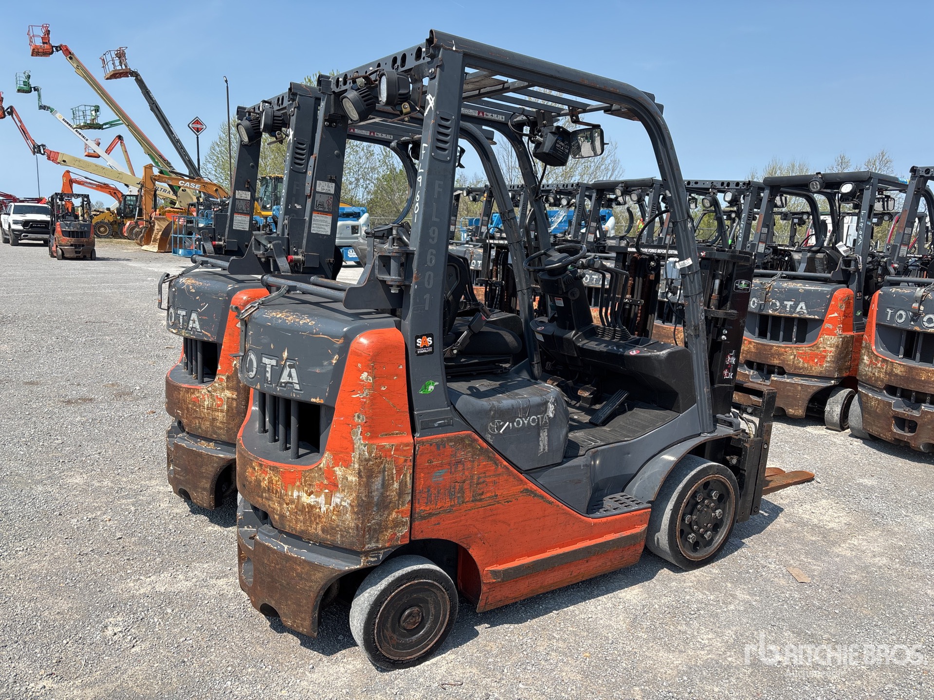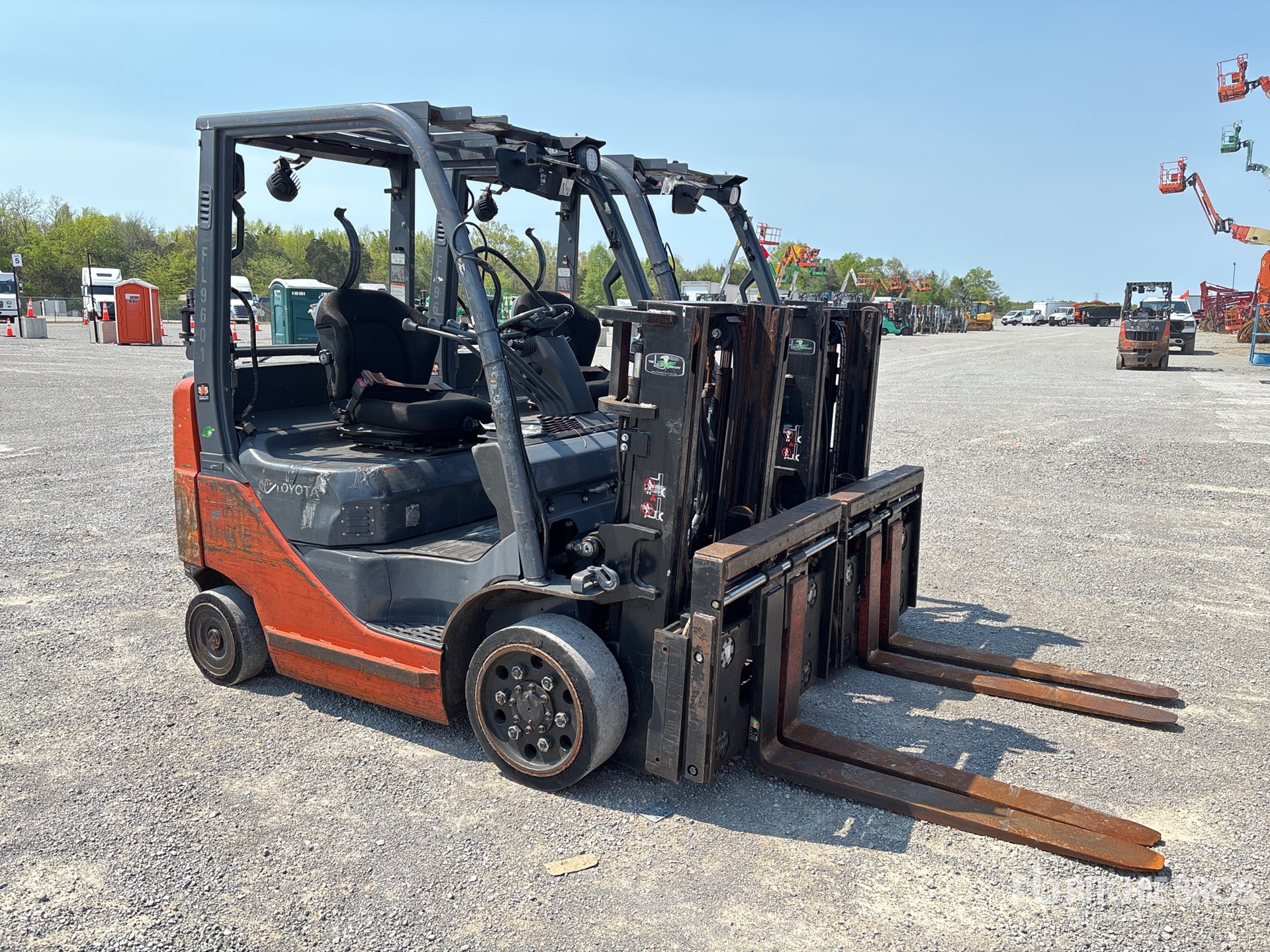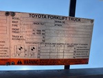 2 Stage Mast, 80 in Max Lift Height, 56 in Lowered Mast Height, 42 in Forks, Side Shift, Fork Positioner, Solid Pneumatic Tires, 2015 US EPA Label, Toyota 4YECS 4 Cylinder 2.2 L LPG Engine