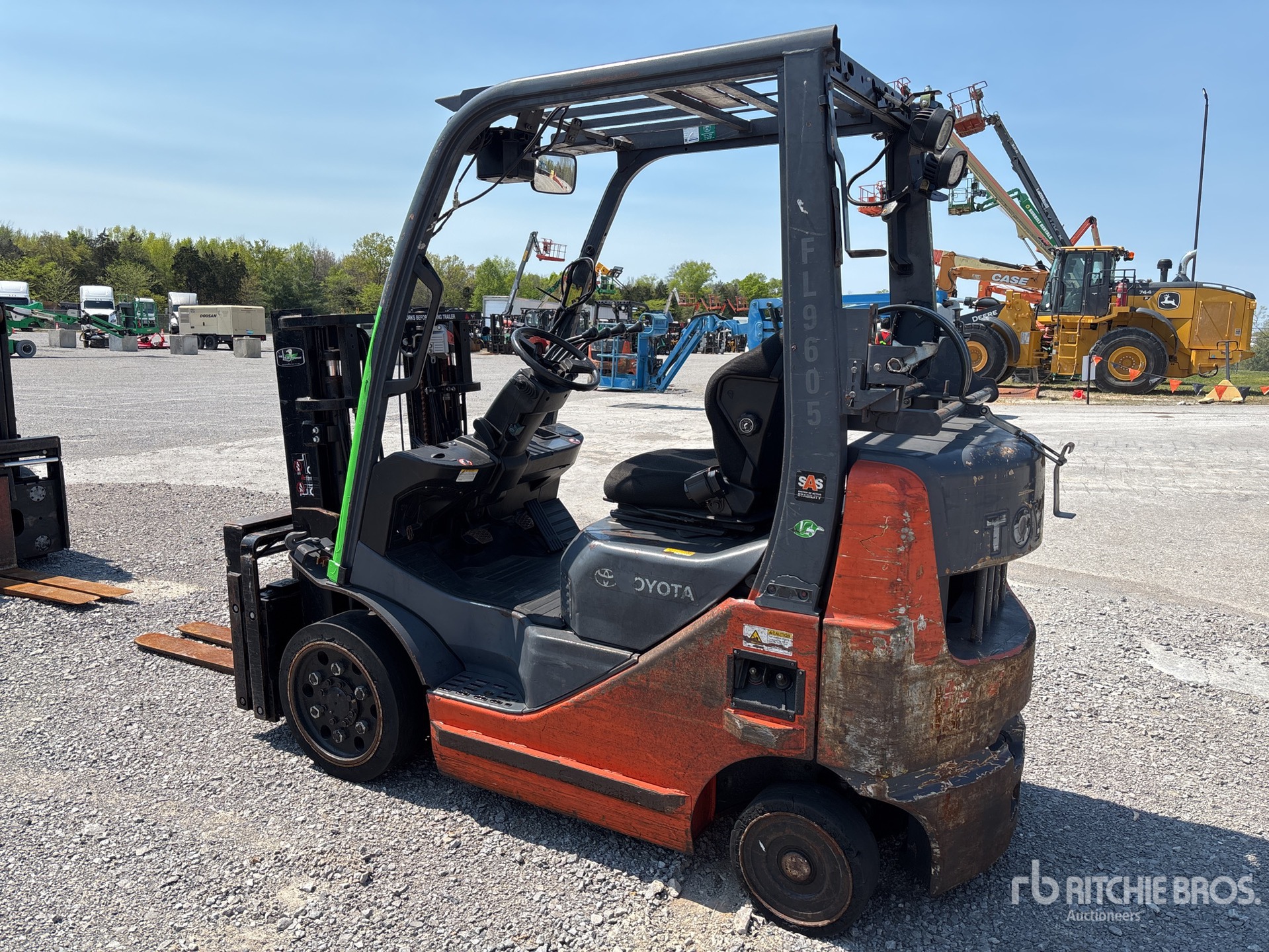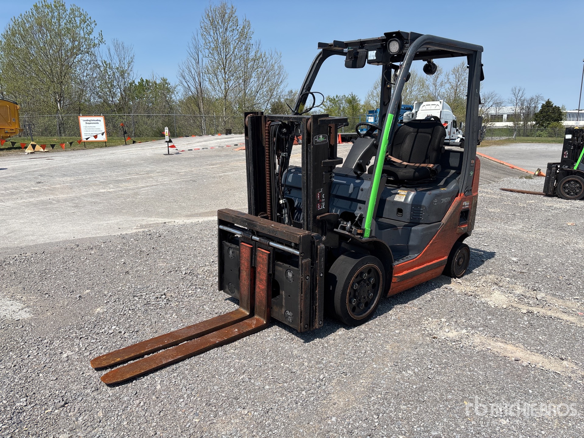 2 Stage Mast, 80 in Max Lift Height, 56 in Lowered Mast Height, 42 in Forks, Side Shift, Fork Positioner, Solid Pneumatic Tires, 2015 US EPA Label, Toyota 4YECS 4 Cylinder 2.2 L LPG Engine