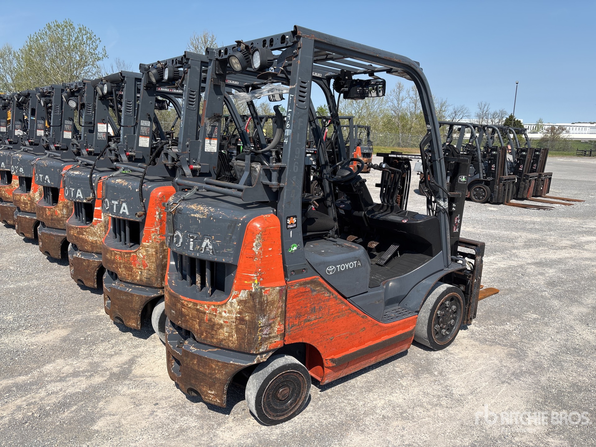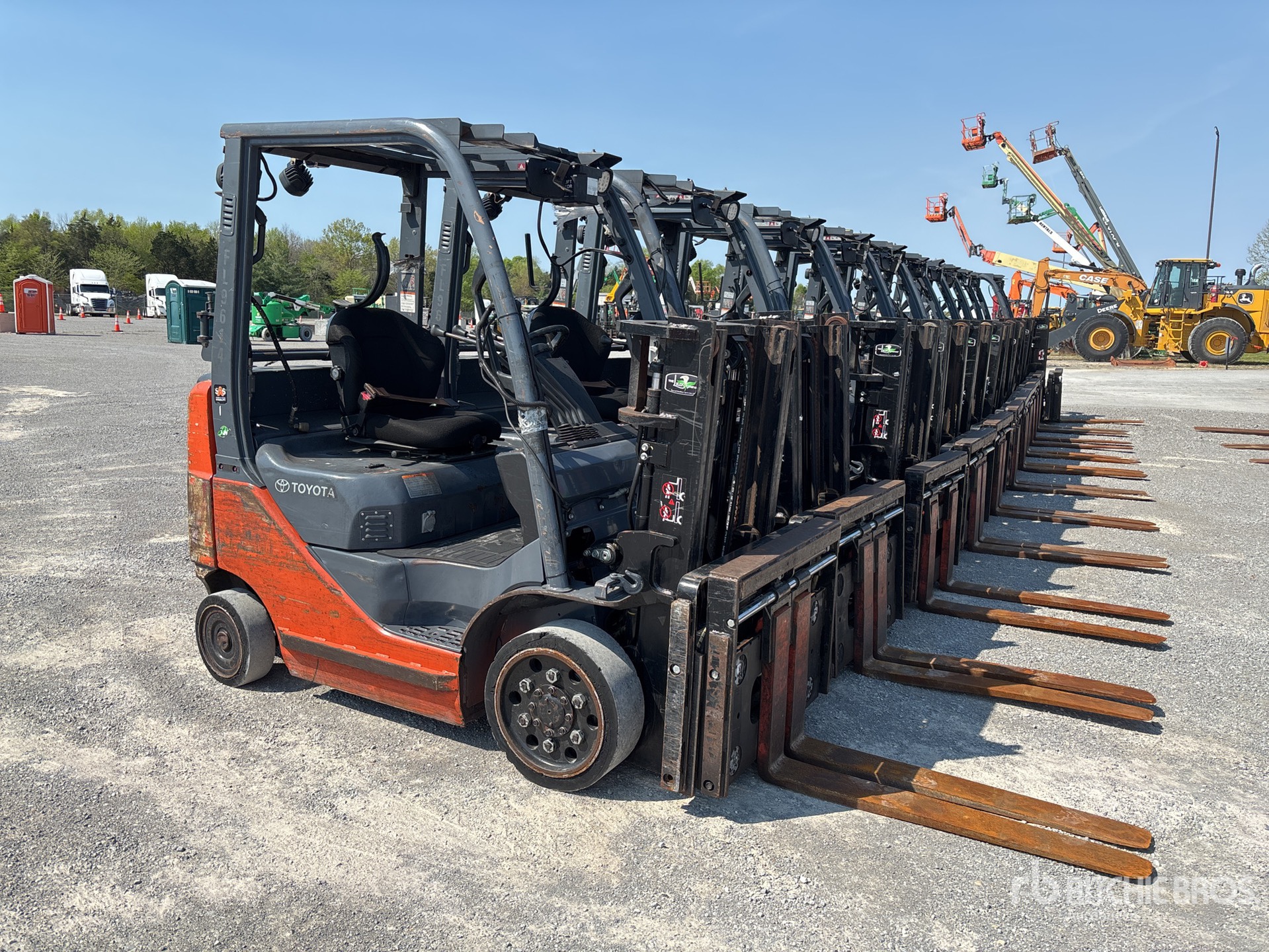 2 Stage Mast, 80 in Max Lift Height, 56 in Lowered Mast Height, 42 in Forks, Side Shift, Fork Positioner, Solid Pneumatic Tires, 2015 US EPA Label, Toyota 4YECS 4 Cylinder 2.2 L LPG Engine