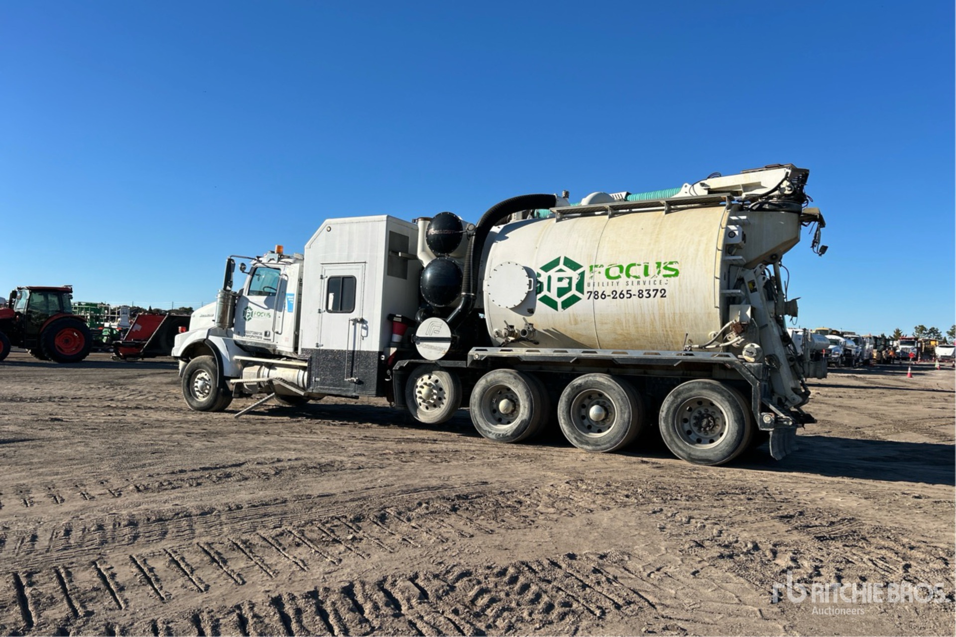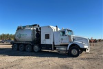 Located in Spot 23, Detroit DD15 6 Cylinder 14.8 L Diesel 505 hp Engine, 13872 Engine hrs, Engine Brake, Eaton Fuller RTLO-18918B 18-Speed Manual Transmission, Double Differential Locks, 20000 lb Front Axle, 82200 lb Rears, 4.56:1 Axle Ratio, 98000 lb GVWR, Aluminum Wheels, 425/65R22.5 Front Tires, 11R24.5 Rear Tires, Dual Steering Boxes, Double Frame, Air Ride Suspension, 308 in Wheelbase, Steel Debris Tank, 1600 gal Fresh Water Tank, Hydraulic Lift Tailgate, 17 ft Boom, 8 in Suction Hose, Robuschi 125 Blower w/ 4993 hrs, Dynablast HV700F 70000 BTU Boiler w/ 230 hrs