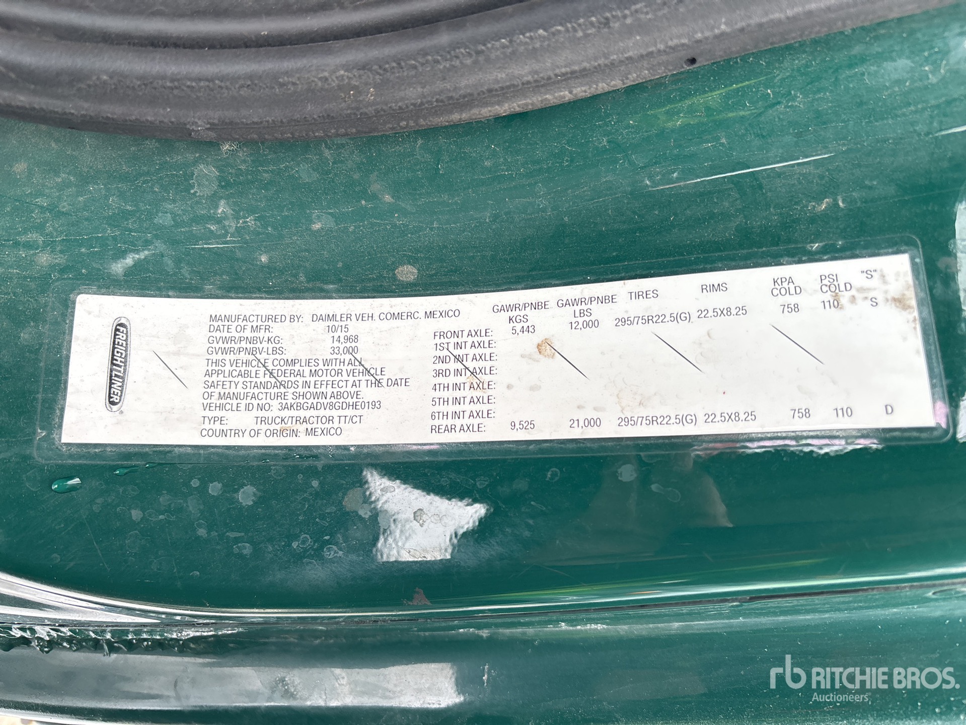 Detroit DD13 410 hp Engine, 13912.6 Engine hrs, Eaton Fuller FM-15E310B-LAS Automated Transmission, 12000 lb Front Axle, 21000 lb Rears, 33000 lb GVWR, Engine Brake, 156 in Wheelbase, Air Suspension, 295/75R22.5, Dual Fuel Tanks