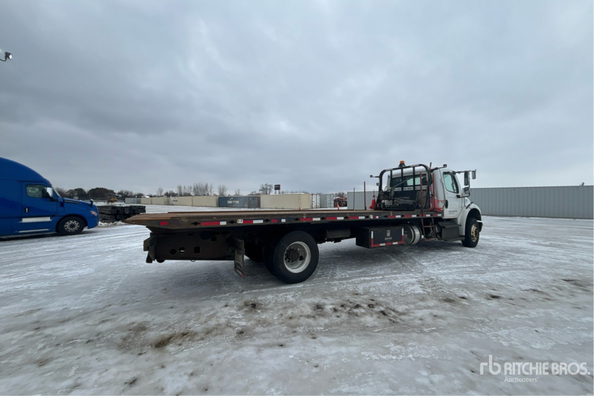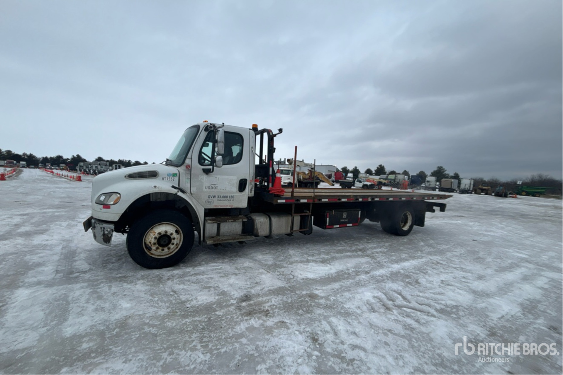 Located in Lane 9, Cummins 6 Cylinder Diesel Engine, Allison Automatic Transmission, 12000 lb Front Axle, 21000 lb Rears, 33000 lb GVWR, 295/75R22.5, Spring Suspension, 266 in Wheelbase, Loadoll Rollback Body, 25 ft x 102 in Bed, Braden L6 Winch