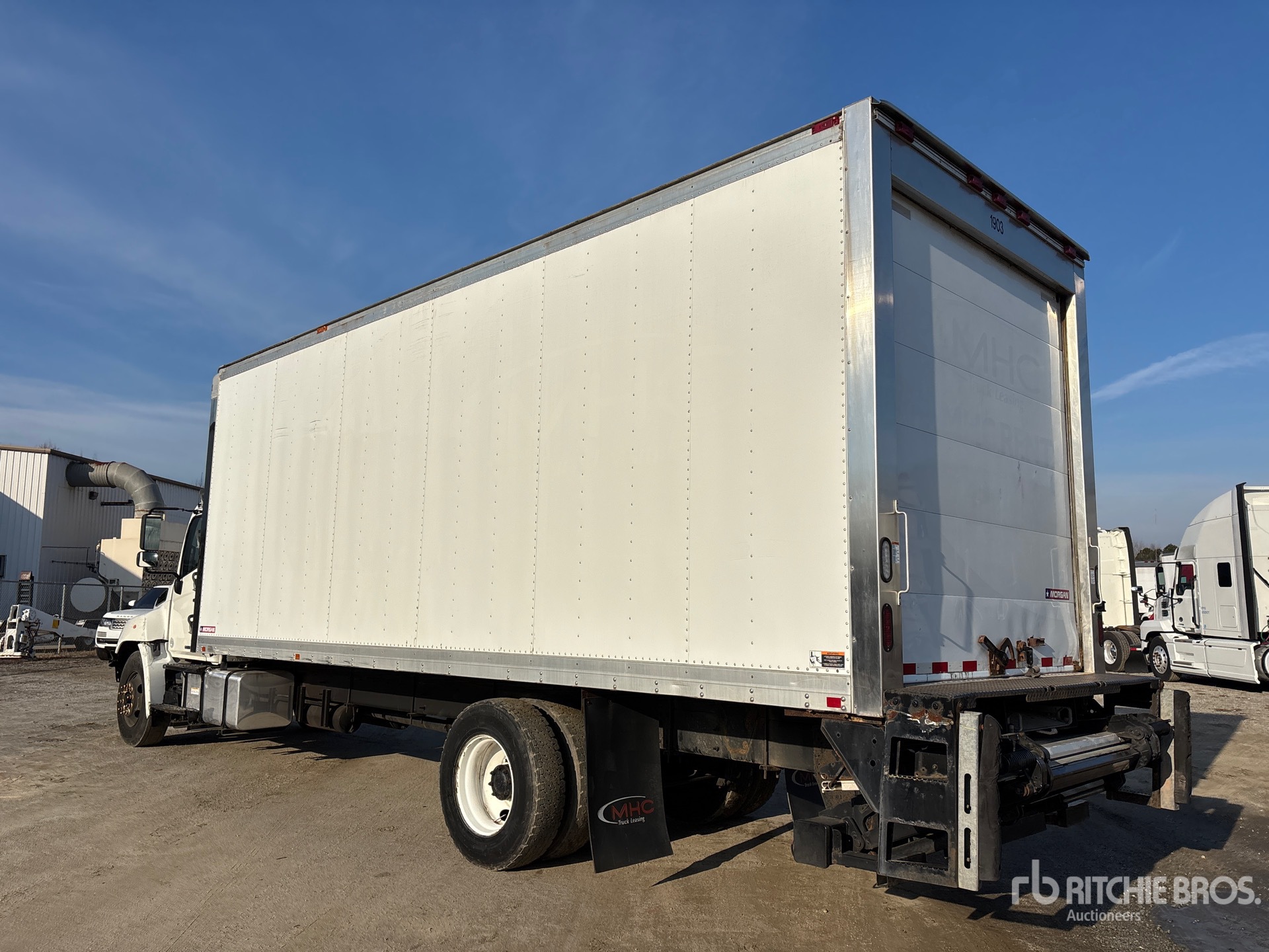 Hino Motors 6 Cylinder Diesel Engine, 2016 US EPA Label, Requires Diesel Exhaust Fluid, Automatic Transmission, 10000 lb Front Axle, 19000 lb Rears, 25950 lb GVWR, 11R22.5 Front Tires, 275/80R22.5 Rear Tires, Hendrickson Air Ride Suspension, 252 in Wheelbase, Carrier Reefer Unit, Morgan 24 ft x 102 in Wide x 103 in High Body, Curbside Door, Walk-Up Ramp, Liftgate
