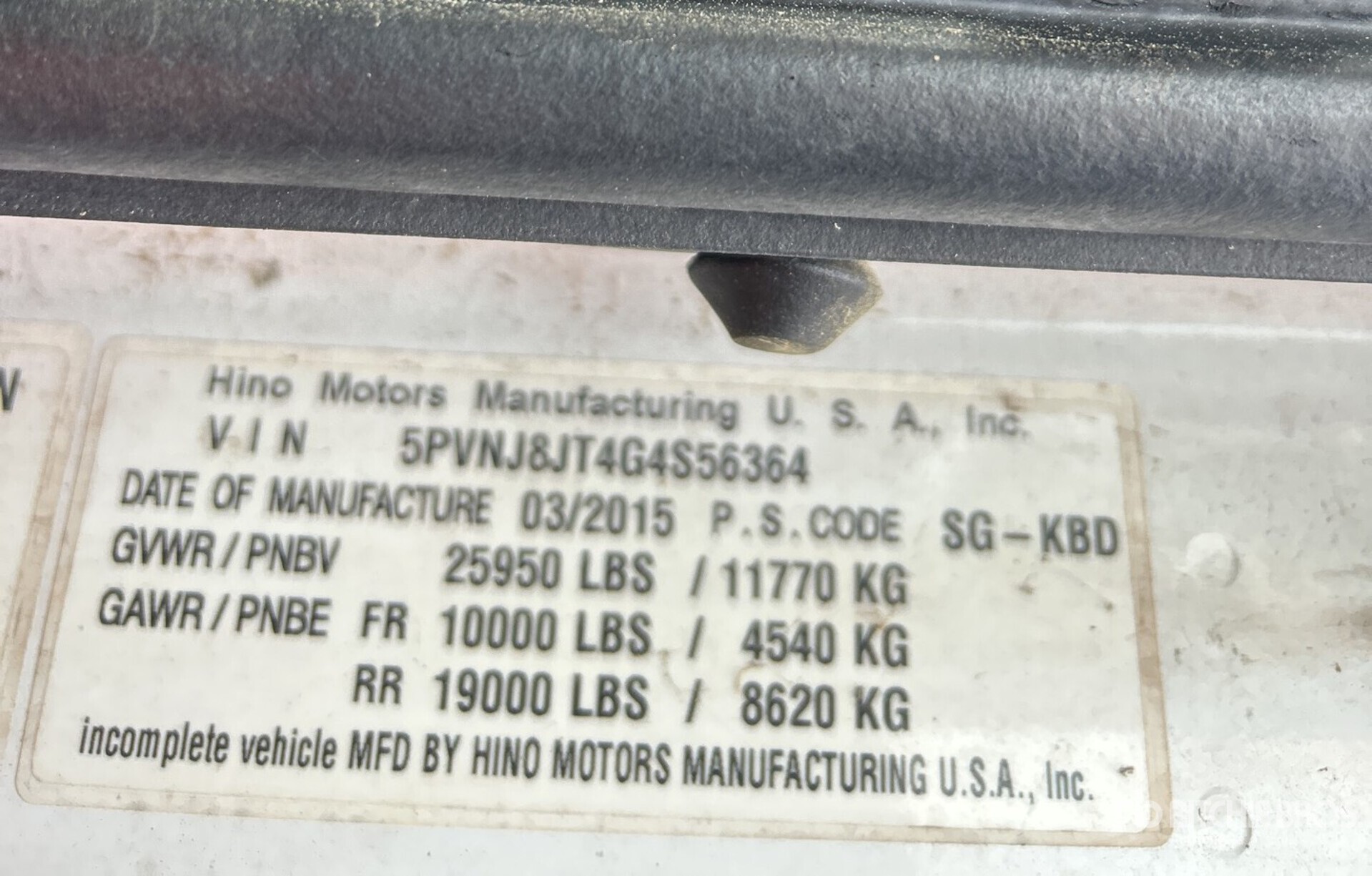 자세한 장비 정보는 범위가 제한되어 있으며, Ritchie Bros. Auctioneers에서는 본 문서에 명시된 항목 이외의 장비 구성요소나 측면에 대해서는 검사하지 않았습니다. 명시적으로 언급하지 않는 한, 당사는 장비 또는 그 구성요소와 관련하여 명시적으로나 묵시적으로 어떠한 진술이나 보증을 제공하지 않습니다. 여기에는 기능, 해당 당국이나 규제 기관의 안전 표준 또는 요구 사항의 준수, 특정 용도 적합성, 상업성 등과 관련된 진술 또는 보증을 포함하되 이에 국한되지 않습니다. 입찰하기 전 장비의 상세한 검사를 실시하도록 강력히 권장합니다.