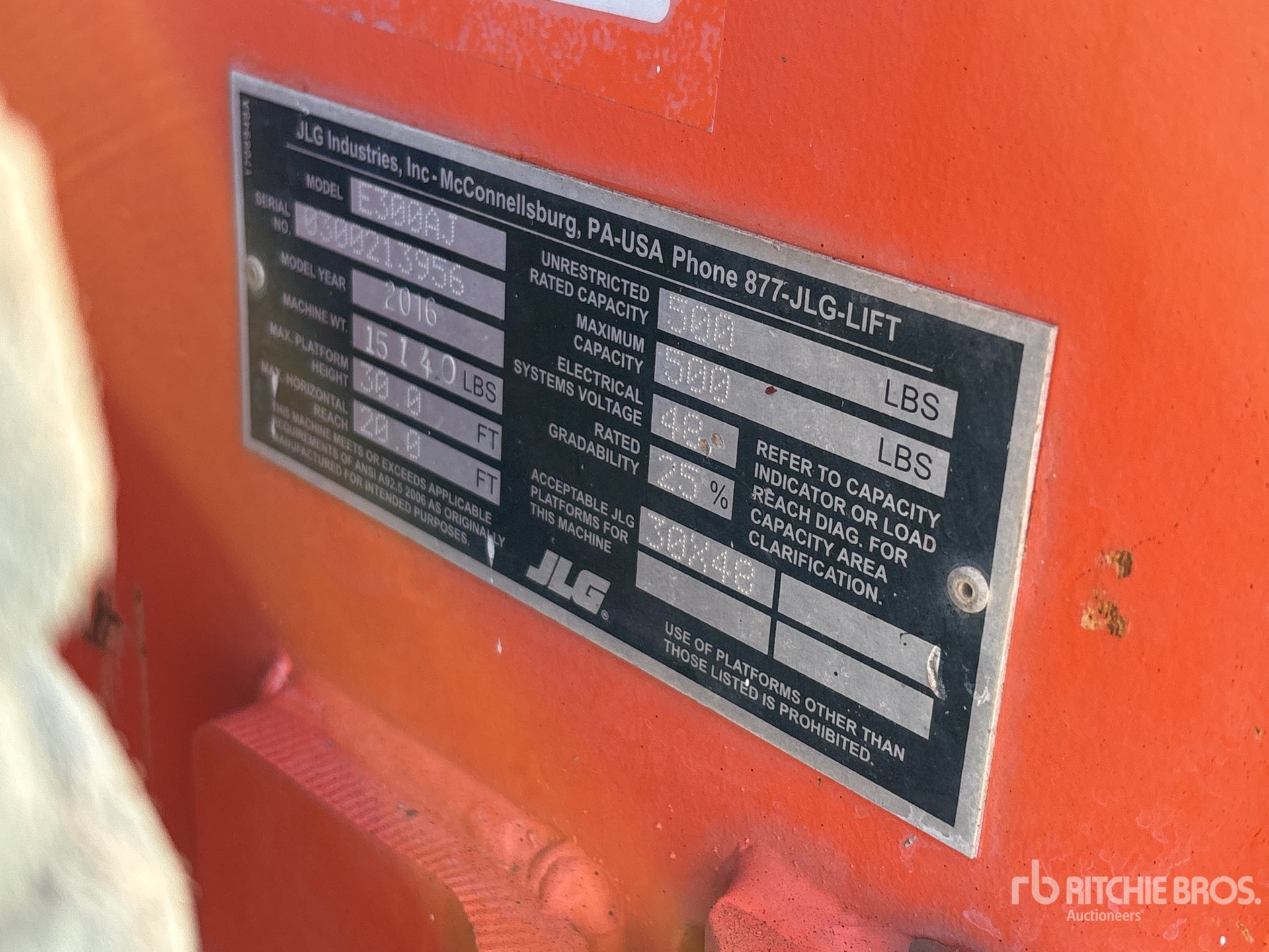 30 ft Max Platform Height, 500 lb Max Weight Capacity, Jib, Power to Platform, 25X7-12 Non-Marking Tires
