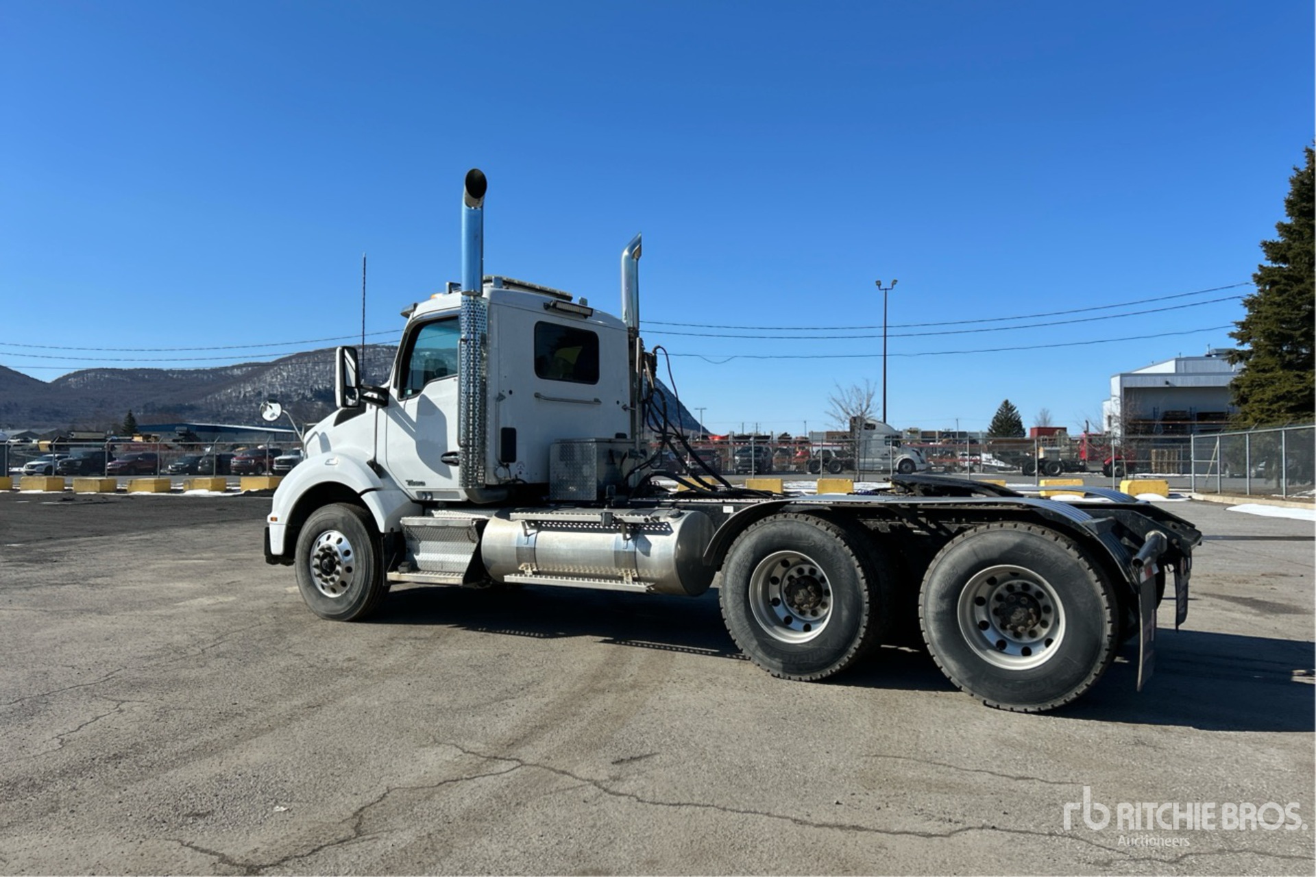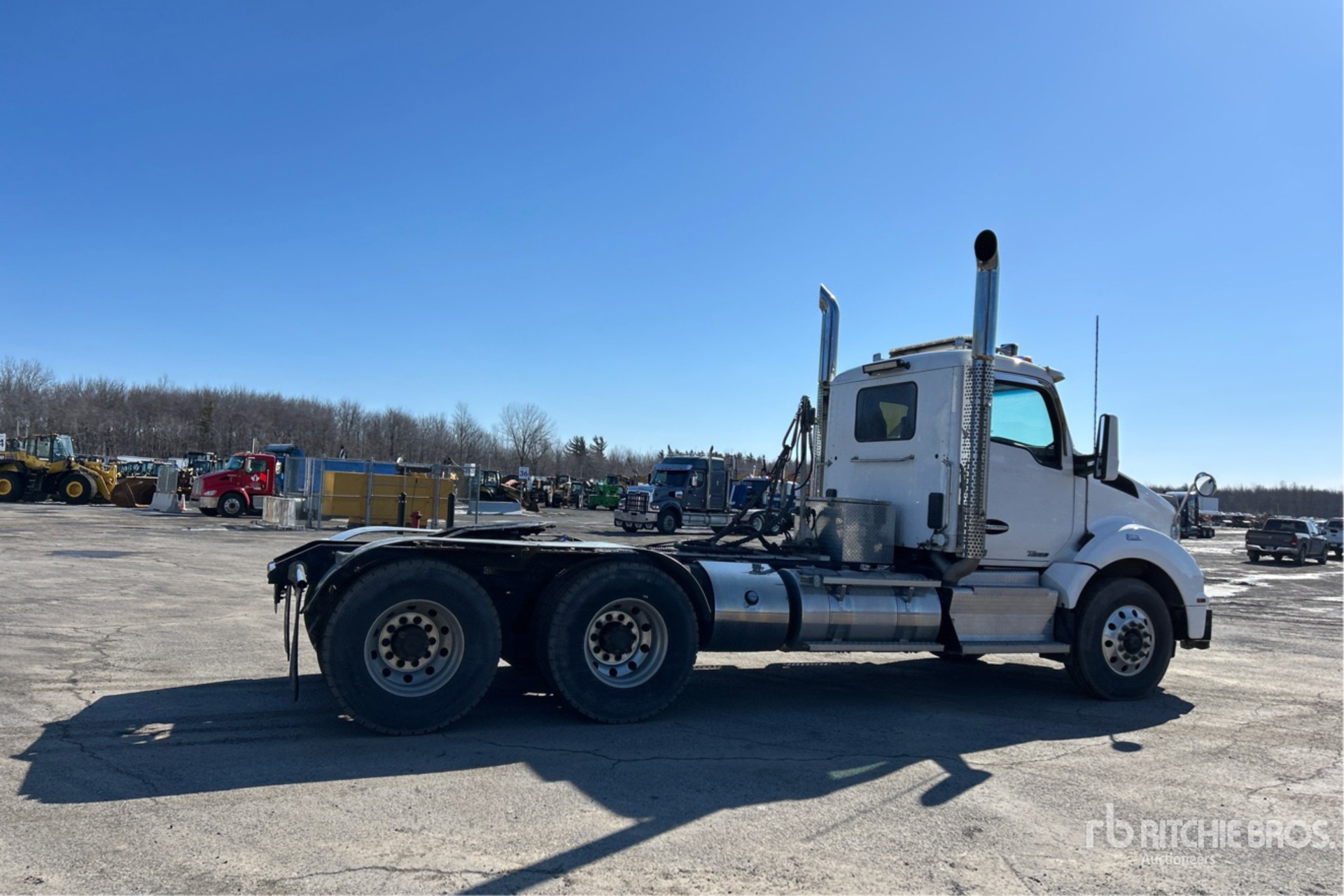 Located in Lane 14 Spot 7, Paccar Engine, Diagnostic Tool Reading 408670 mi, 14151 Engine hrs, Eaton Fuller RTLO-18918B 18-Speed Manual, 5988 kg Front Axle, 20866 kg Rears, 26853 kg GVWR, Engine Brake, Double Differential Locks, 206 in Wheelbase, 8-Bag Air Suspension, Aluminum Wheels, 12R22.5, Wet Kit, Air Sliding 5th Wheel, Dual Fuel Tanks