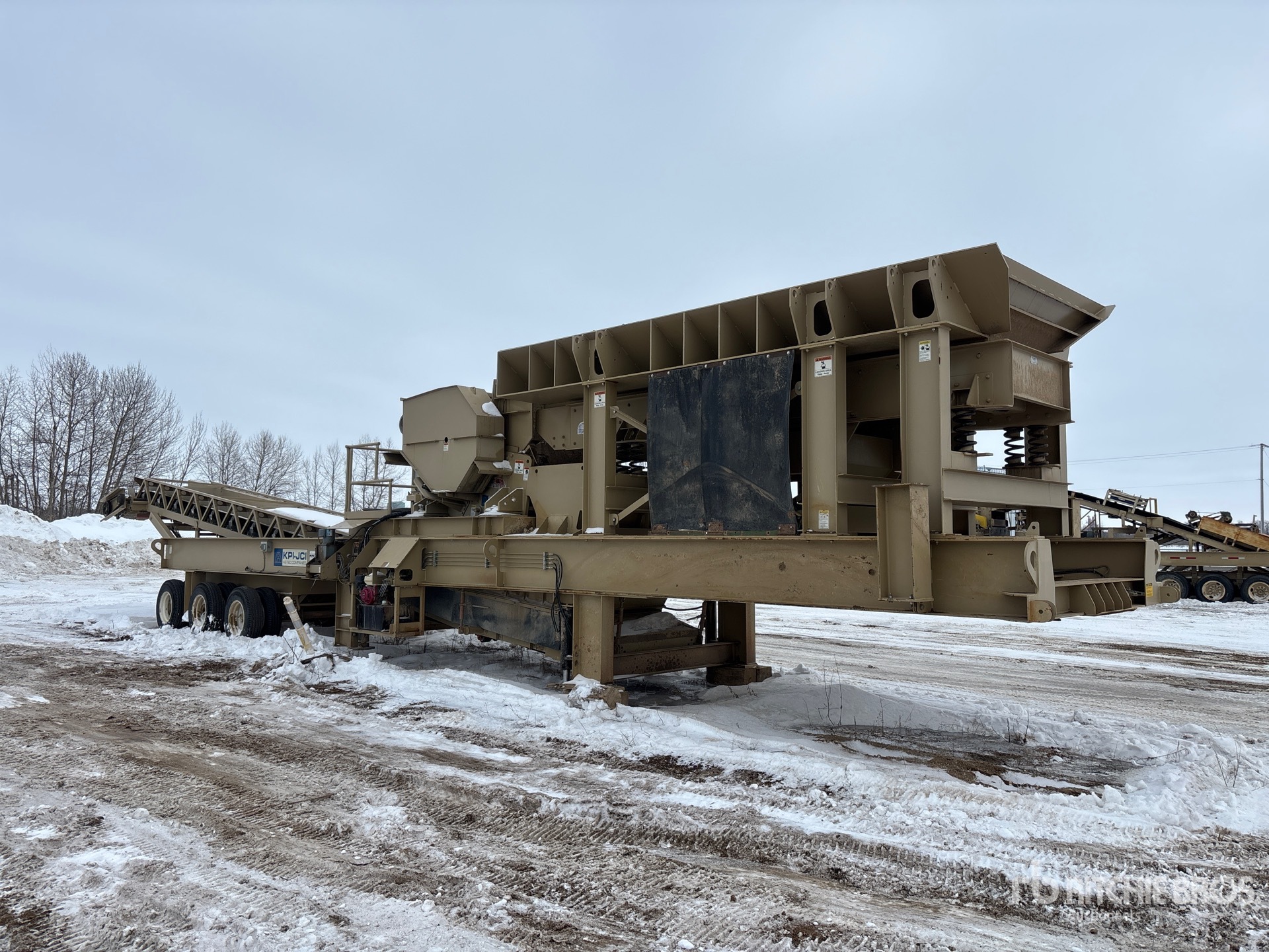 Fabtec 9 ft x 19 ft Vibratory Pan Feeder KPI JCI 20 in x 56 in Jaw Crusher, 125 hp Drive Motor, 48 in Wide Under Crusher Conveyor, Radio and Cable Remote Control, Auto Lube, Honda GX240 1 Cylinder Gasoline Engine, Tri/A Carrier, Hydraulic Leveling