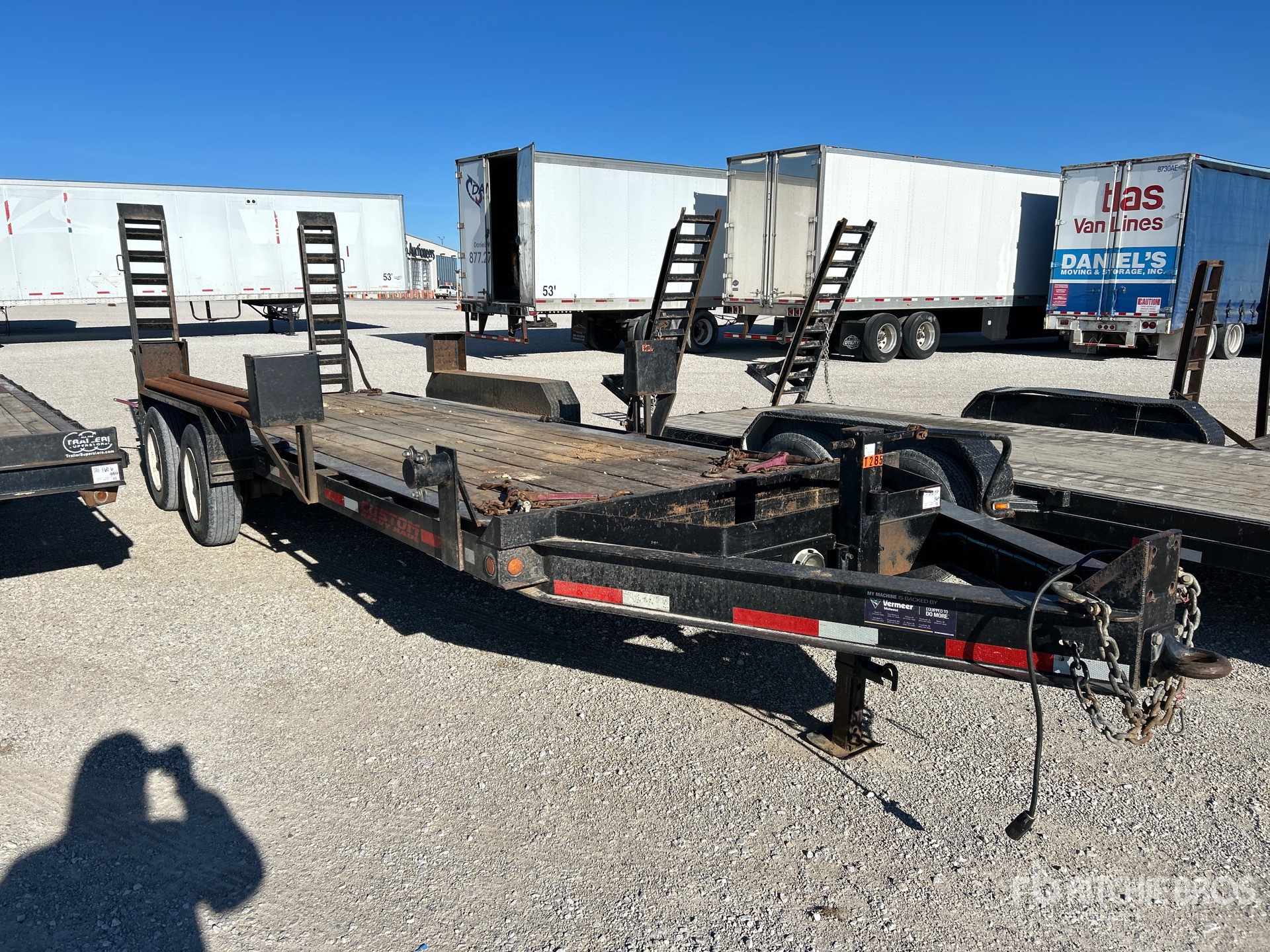Lunette Ring Hitch, Torsion Axle, Electric Brakes, 20 ft Main Deck, 3 ft Fixed Dovetail, 82 in Overall Deck Width, Spring Assisted Ramps, Wood Flooring, 235/75R17.5 Tires, 24000 lb GVWR, Equipment-from-Sellenriek-Construction