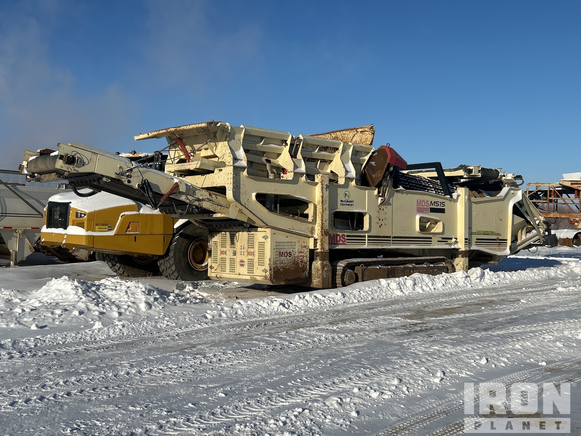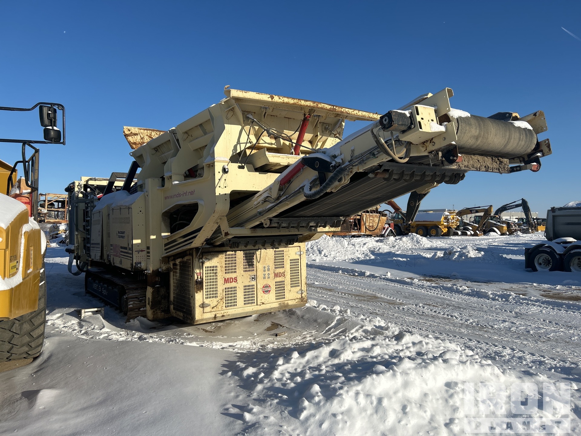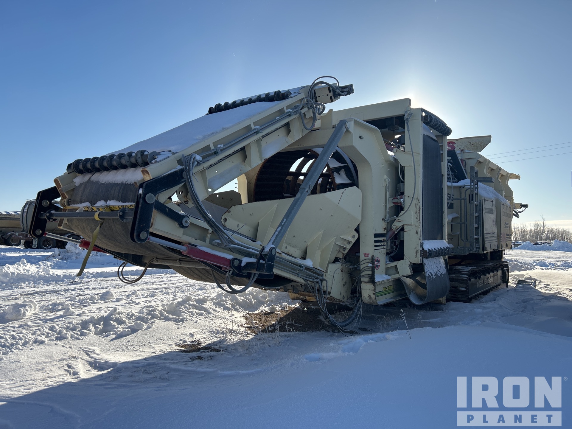20 ft x 5 ft Trommel Screen, 46 in Wide Under Screen Conveyor, 38 in Wide Right Discharge Conveyor, 47 in Wide End Discharge Conveyor, Cat C4.4 4 Cylinder 96.5 kW Diesel Engine, Hydraulic Leveling, 20 in Triple Grouser Track Shoes, Hydraulic Folding Hopper Doors