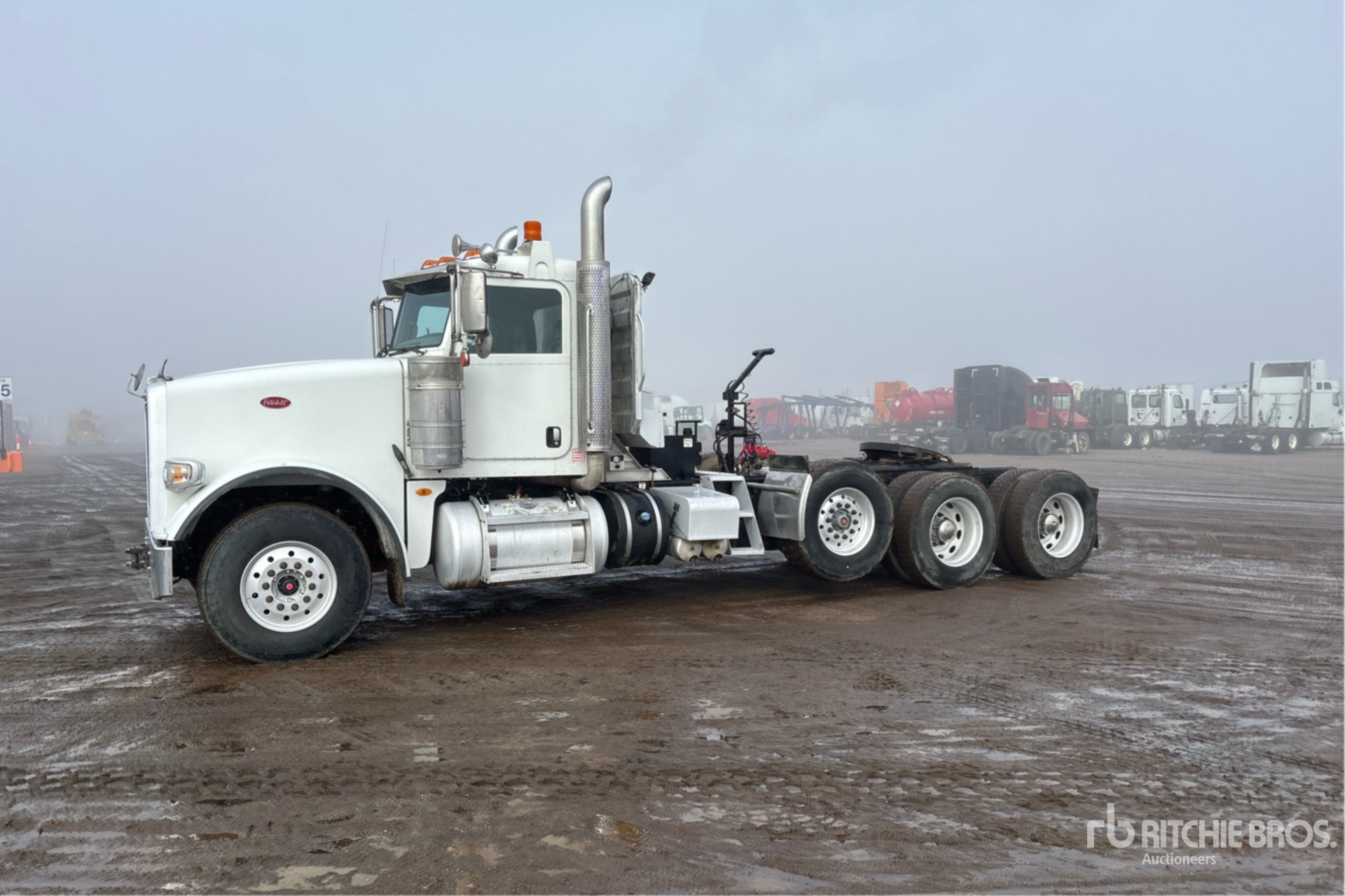 Cummins ISX15 550 hp Engine, 2015 US EPA Label, 14705 Engine hrs, Eaton Fuller 18-Speed 14600 lb Front Axle, 46000 lb Rears, 76000 lb GVWR, Engine Brake, 258 in Wheelbase, Air Suspension, Air Lift Pusher Axle, Aluminum Outer Wheels, 315/80R22.5 Front Tires, 11R24.5 Rear Tires, Wet Kit, Air Sliding 5th Wheel, Dual Fuel Tanks, Headache Rack