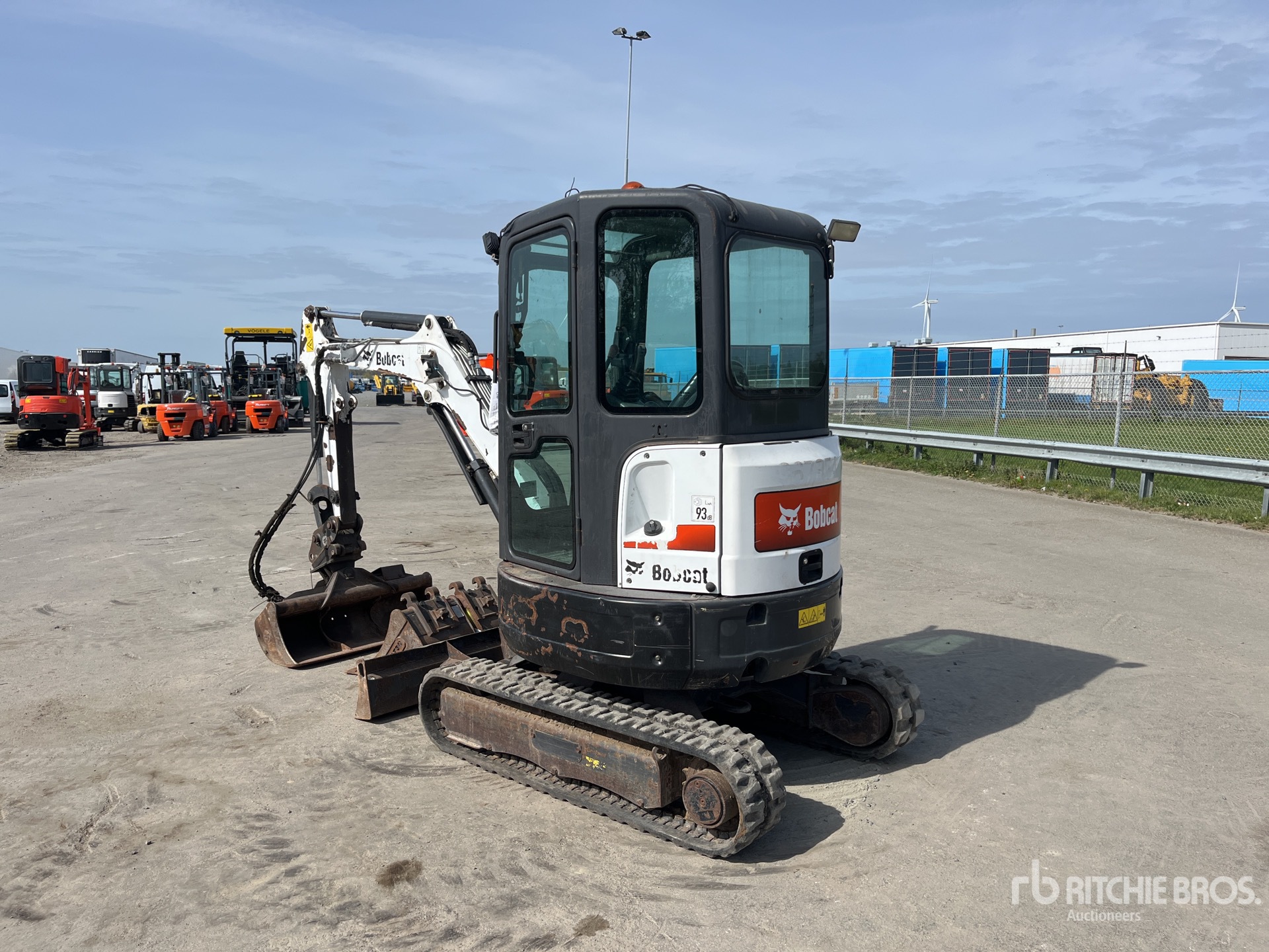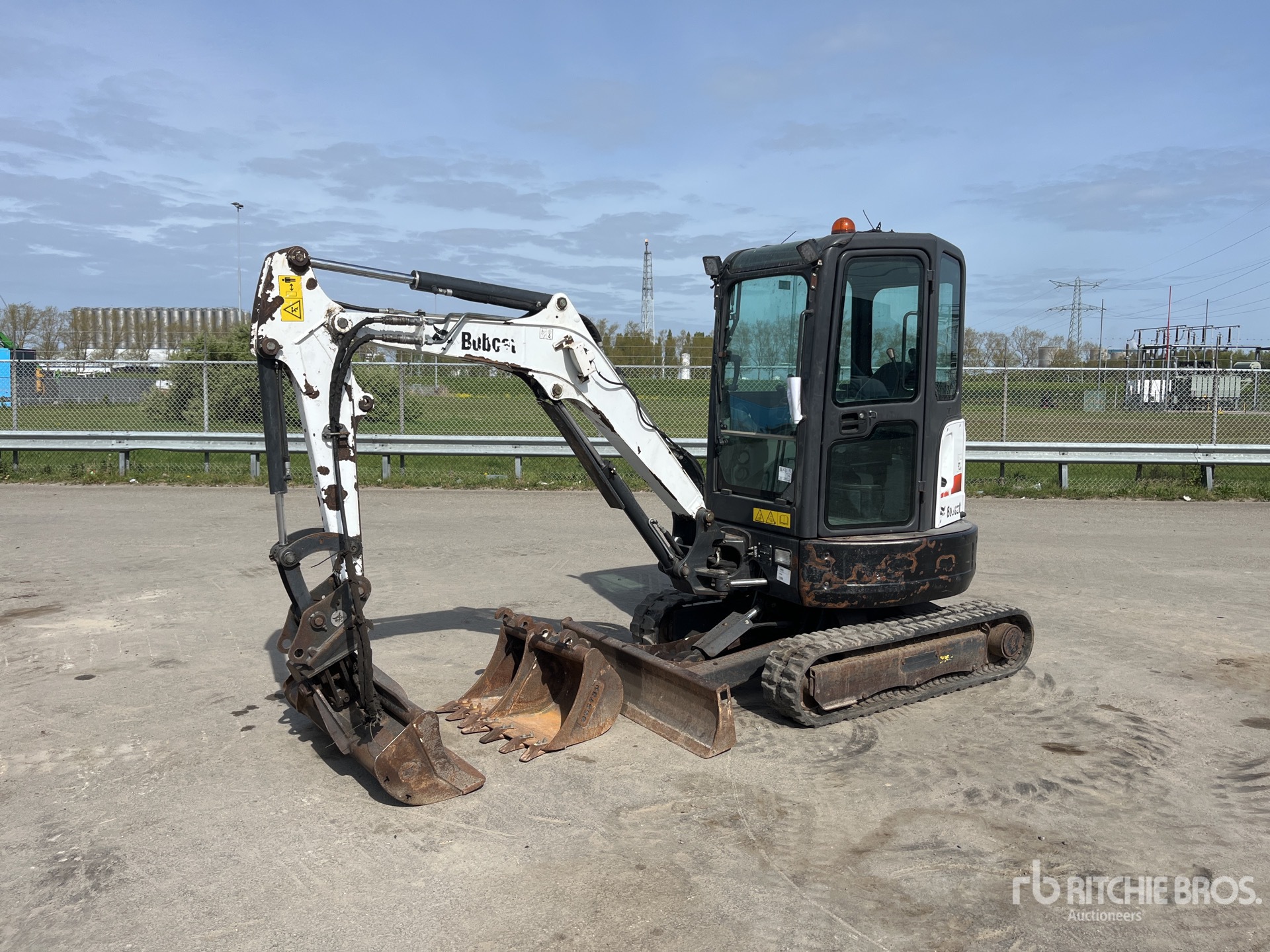 Enclosed Cab, Swing Boom, 1100 mm Stick, Auxiliary Hydraulic Plumbing, Backfill Blade, 250 mm Rubber Tracks, 1150 mm Hydraulic Tilting Bucket, Additional 450 mm Digging Bucket, digging bucket 250mm
