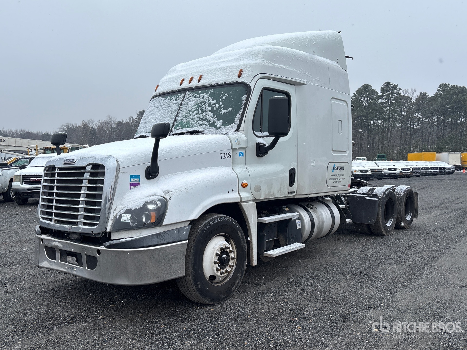Detroit DD15 455 hp Engine, 2016 US EPA Label, 20761 Engine hrs, Detroit DT12-DA-1550 12-Speed Automated Transmission, 12000 lb Front Axle, 40000 lb Rears, 52000 lb GVWR, Engine Brake, 72 in Mid Roof Sleeper Cab, 232 in Wheelbase, Air Suspension, 11R22.5 Front Tires, 295/75R22.5 Rear Tires, Air Sliding 5th Wheel