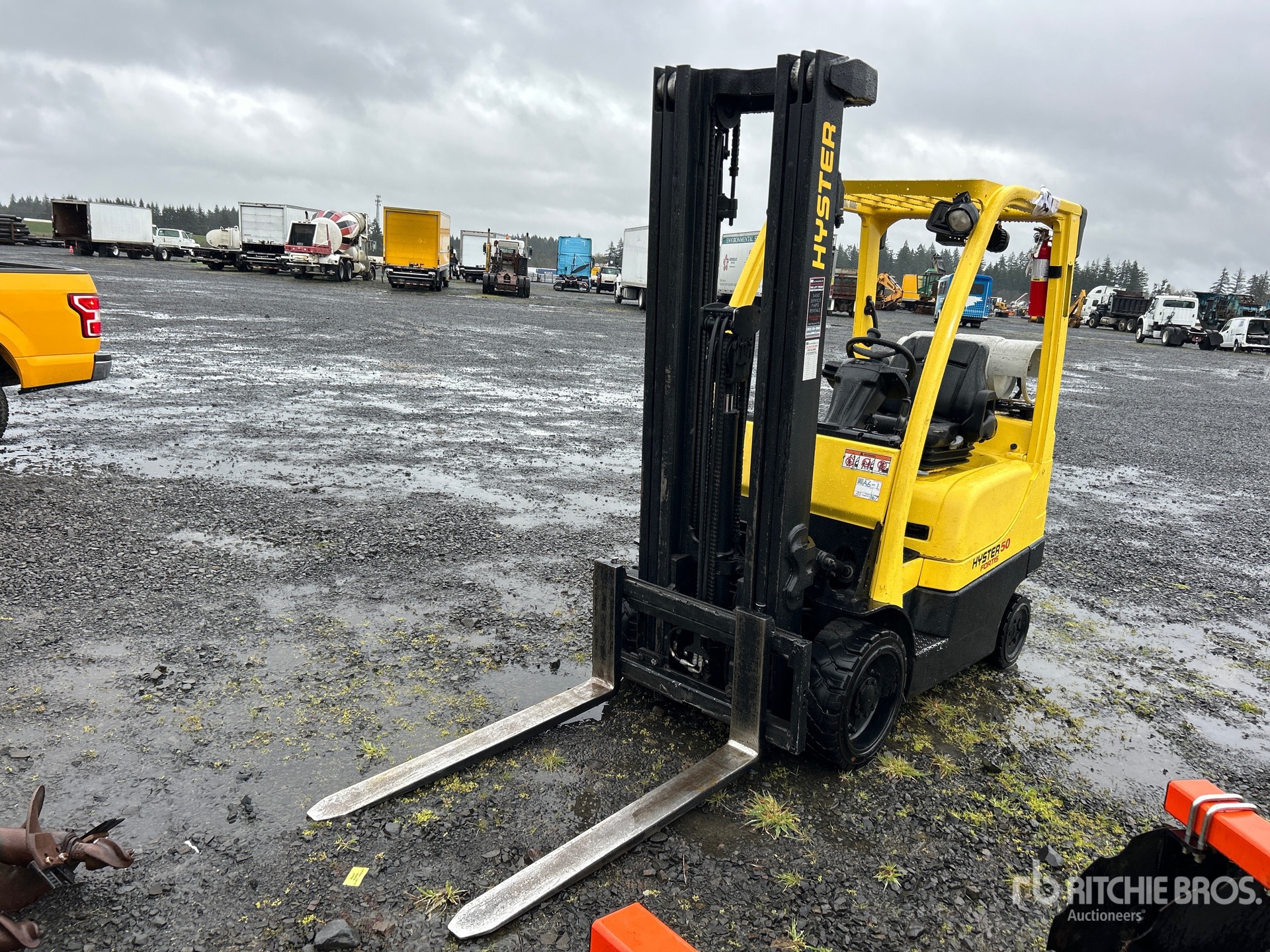 3 Stage Mast, 218.5 in Max Lift Height, 94 in Lowered Mast Height, 48 in Forks, Side Shift, PSI 4 Cylinder LPG Engine