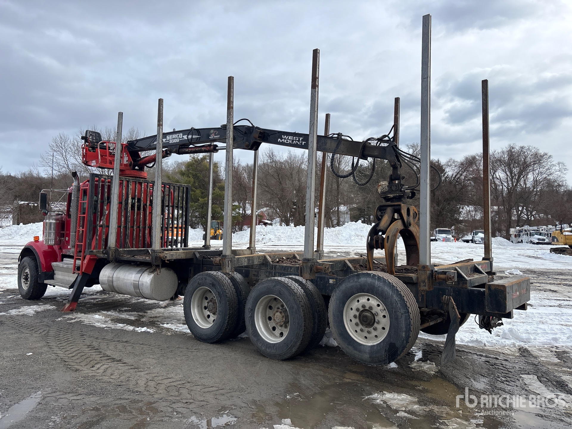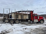 Cummins ISX15 6 Cylinder 15 L Diesel 550 hp Engine, 2016 US EPA Label, CARB Compliant, Requires Diesel Exhaust Fluid, 8343 Engine hrs, Engine Brake, Eaton Fuller RTLO-18918B 18-Speed Manual Transmission, Double Differential Locks, 20000 lb Front Axle, 46000 lb Rears, Meritor RT-46-164PEH Drive Axles, 4.10:1 Axle Ratio, 79000 lb GVWR, Air Ride Cab, Aluminum Wheels, 425/65R22.5 Front Tires, 11R24.5 Rear Tires, Steerable Air Lift Tag Axle, Dual Steering Boxes, Double Frame, Hendrickson Haulmaax Rubber over Walking Beam Suspension, 302 in Wheelbase, PTO, 24 ft Deck Length, 102 in Deck Width, Serco 8500 Boom, 8500 lb Capacity, Front Mounted, Articulated Boom, ( 5 ) 7 ft 8 in Bunks