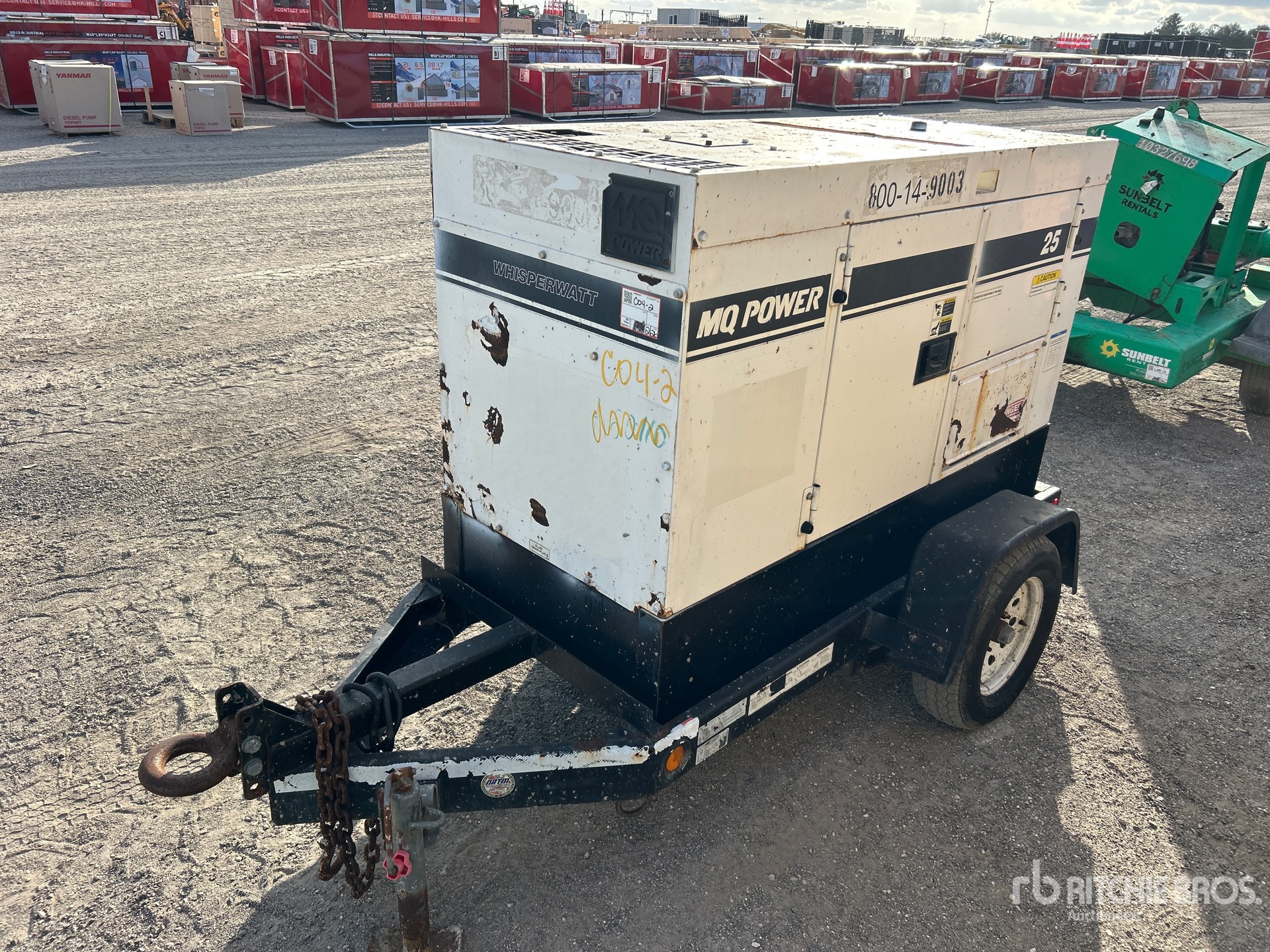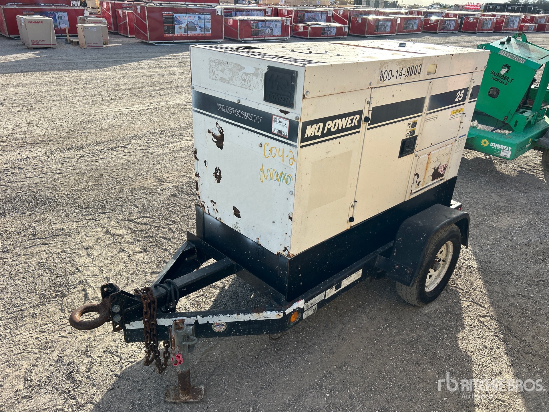 2016 US EPA Label, Isuzu 4 Cylinder 30 kW Diesel Engine, 25 kVA/20 kW Rated 3 Phase Output, 480 V / 240 V Rated Voltage, 14.4 kVA,/14.4 kW, Rated Single Phase Output, 230 V & 400 V Receptacles, Sound Attenuated, Bottom Mounted Fuel Tank, Lunette Ring Carrier Trailer, Surge Brakes