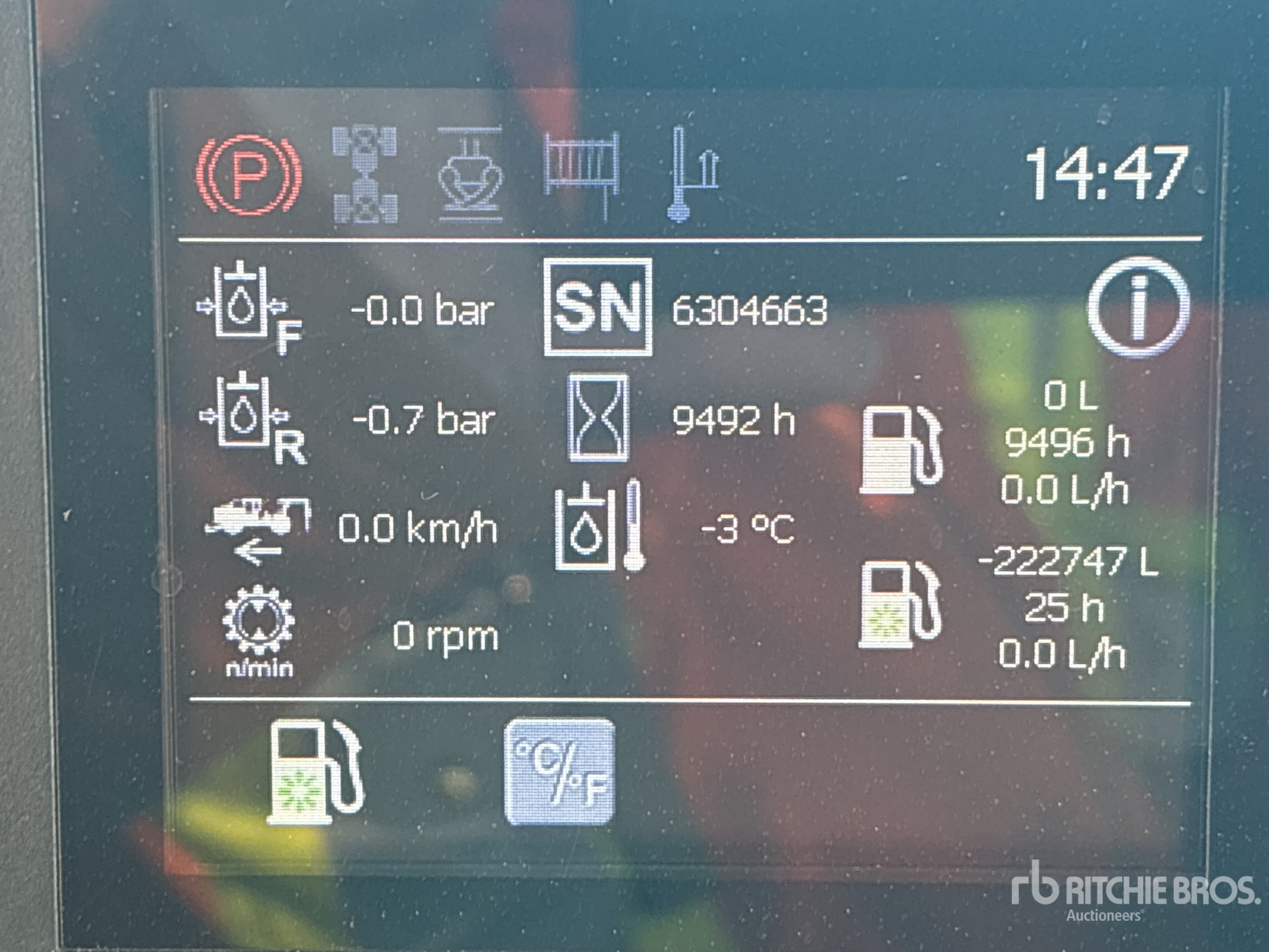 9492 hrs-No guarantees made as to actual hours/miles/kilometers; the inspection report reflects what can be visually observed.