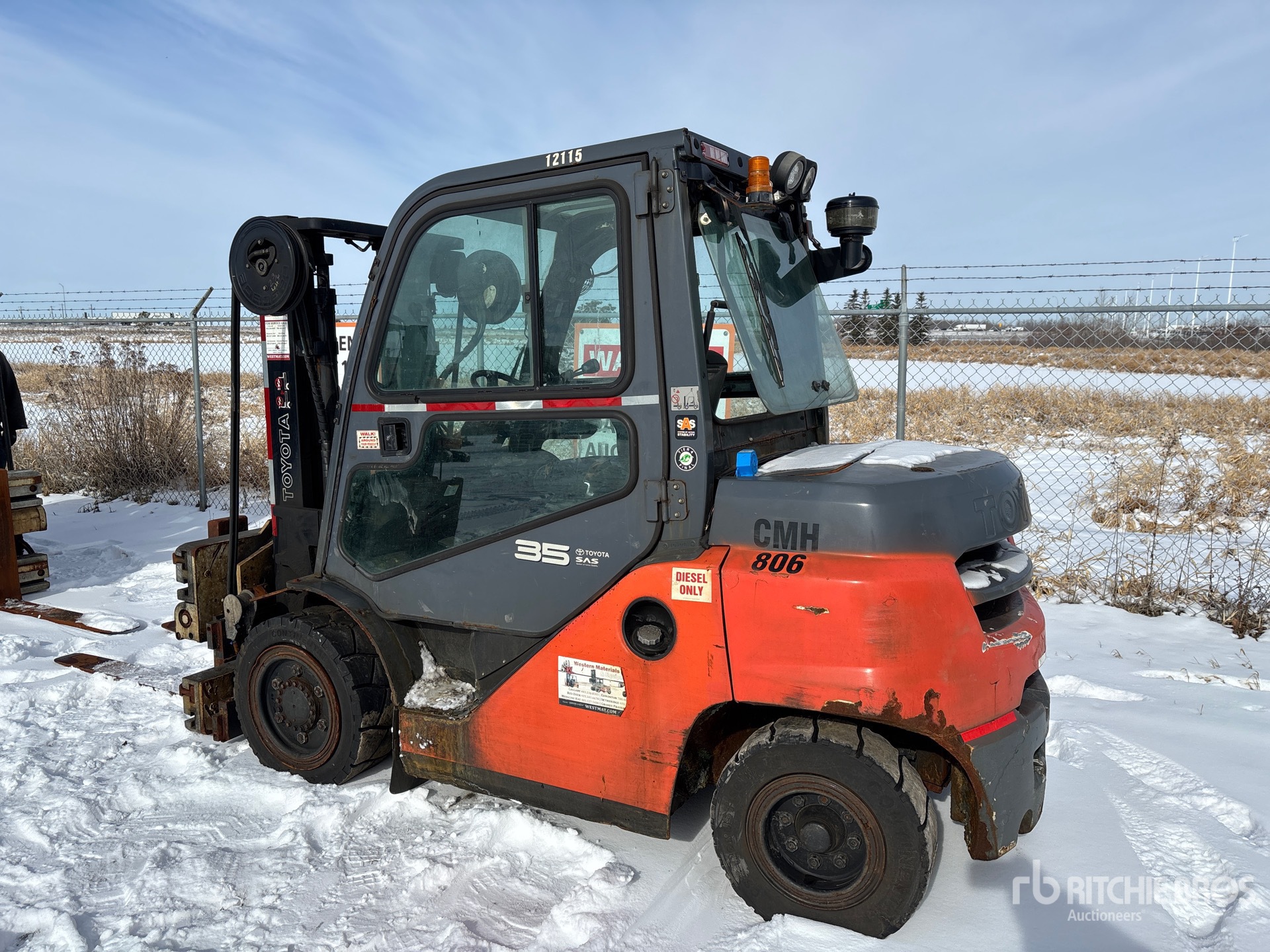 Enclosed Cab, 2 Stage Mast, Full Free Lift, 120 in Max Lift Height, 80 in Lowered Mast Height, 48 in Forks, Solid Pneumatic Tires, 2017 US EPA Label, Toyota HTIEL30.1KD 4 Cylinder 50 hp 2.9 L Diesel Engine