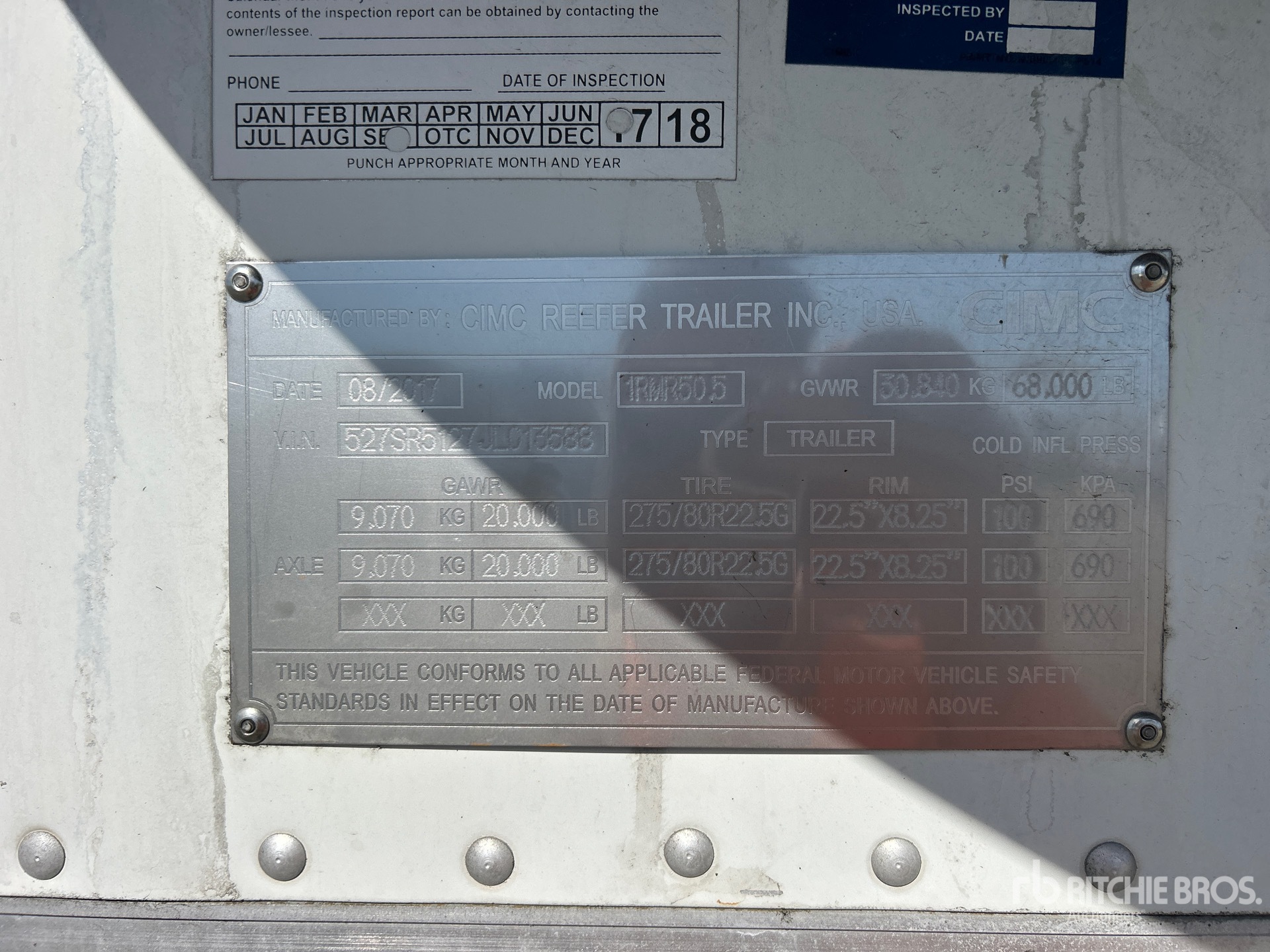 Carrier Vector 8600MT Refrigeration Unit, 16513 Total Hours, Aluminum/Steel Combination Frame, Spring Sliding Suspension, Aluminum Floor, Roll-Up Door, Lift Gate, 295/75R22.5 Tires 68000 lb GVWR