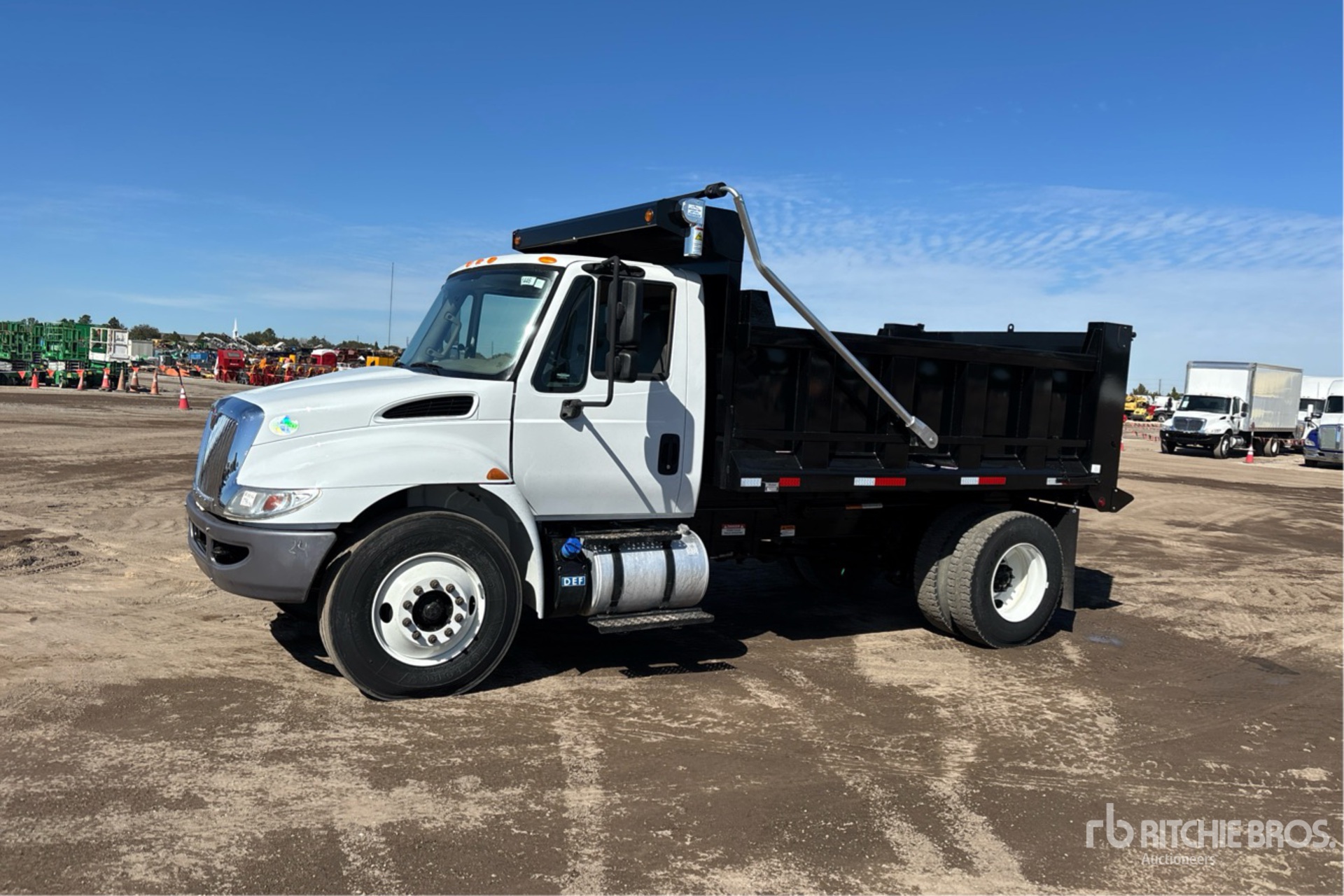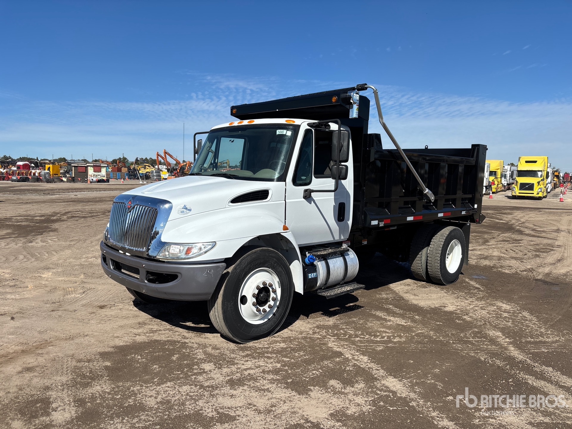 Located in Spot 9, Cummins B6.7 220 6 Cylinder 6.7 L Diesel 260 hp Engine, 2017 US EPA Label, Requires Diesel Exhaust Fluid, 3443 Engine hrs, Allison Automatic Transmission, 13000 lb Front Axle, 20000 lb Rears, 33000 lb GVWR, 11R22.5, Spring Suspension, 175 in Wheelbase, PTO, Godwin 12 ft Long x 40 ft High Steel Body, Electric Roll Tarp, 2-Way Tailgate, Pintle Hitch