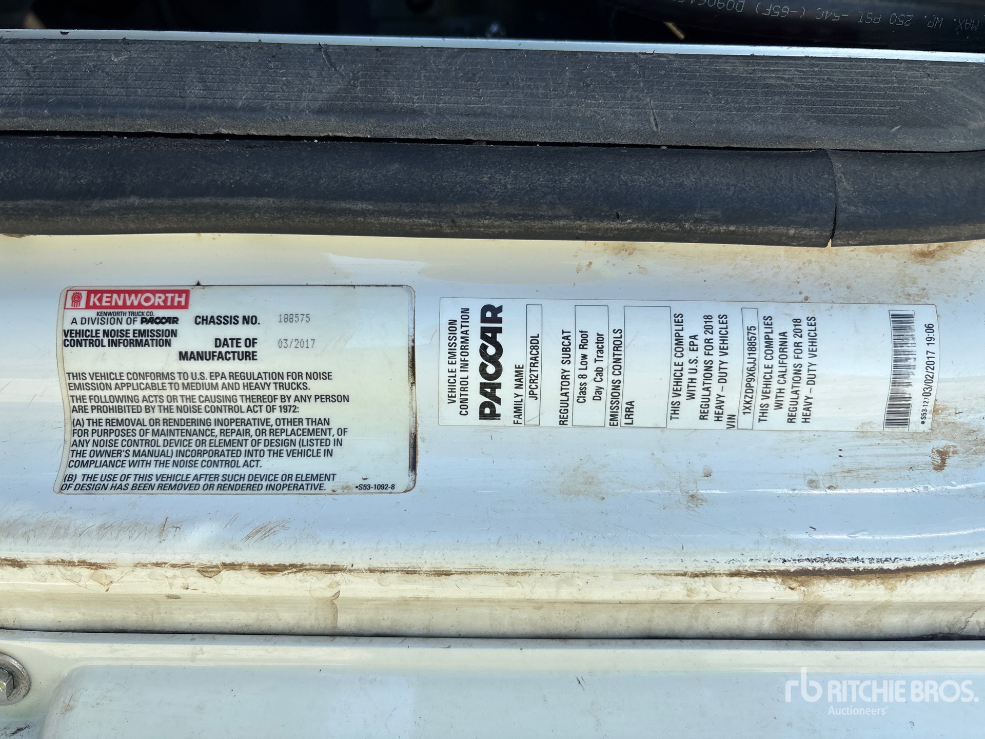 Paccar MX-13 455 hp Engine, 2017 US EPA Label, 12475 Engine hrs, Eaton Fuller FO-16E313A MHP 13-Speed Automated, 13200 lb Front Axle, 40000 lb Rears, 53200 lb GVWR, Engine Brake, 189 in Wheelbase, Air Suspension, 295/75R22.5, Air Sliding 5th Wheel, Dual Fuel Tanks, Headache Rack, Equipment-from-Bellwether-Forest-Products