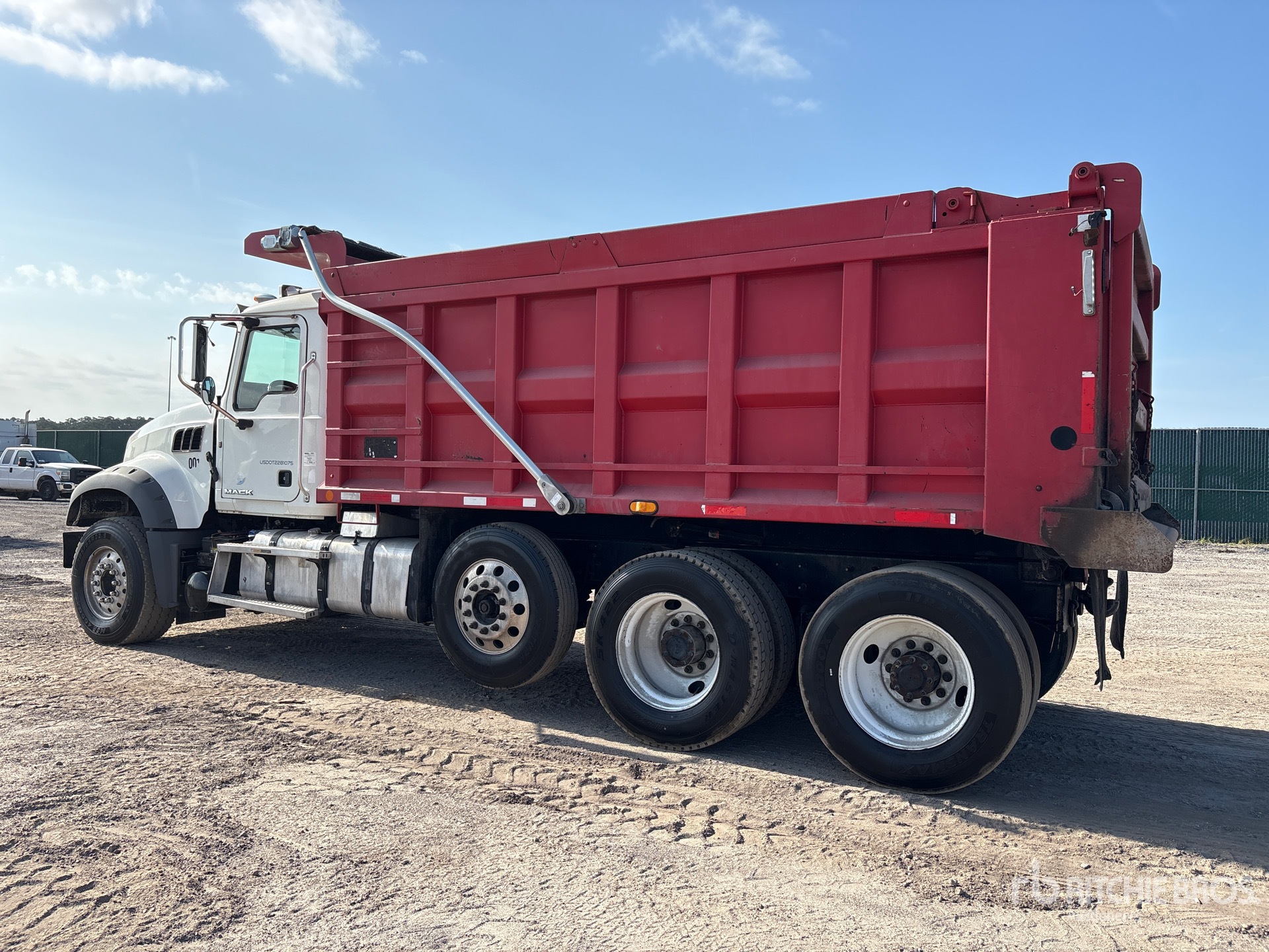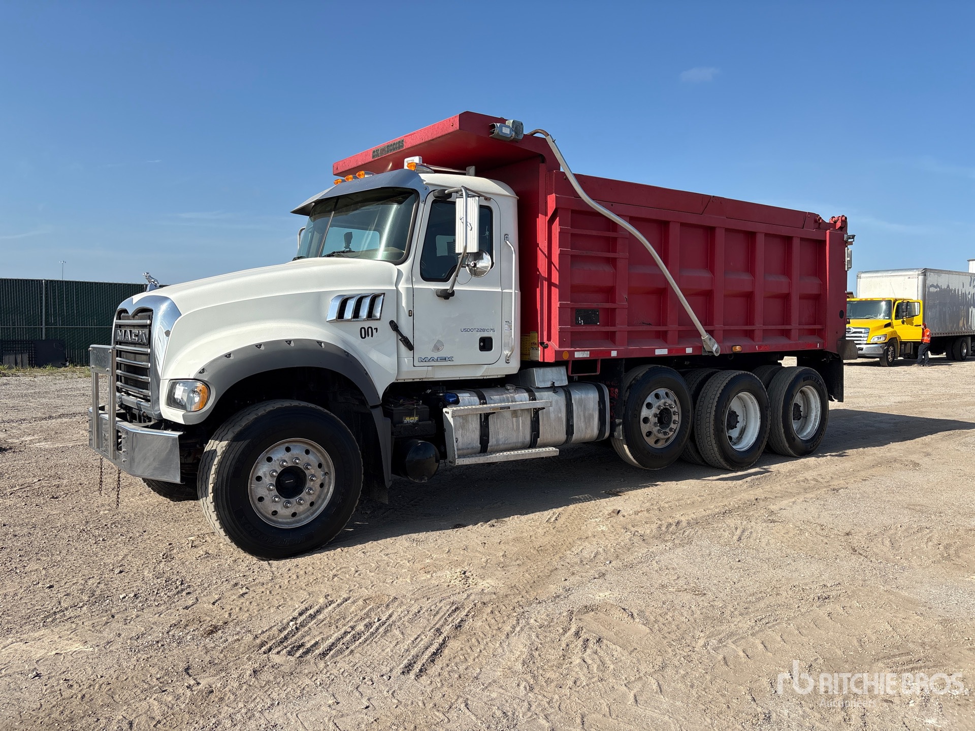 Located in Lane 5 Spot 313, Mack MP8 12.8 cid Diesel 455 hp Engine, 2017 US EPA Label, Requires AdBlue, Allison 3000 Automatic Transmission, Differential Lock, 18000 lb Front Axle, 22000 lb Rears, 62000 lb GVWR, Aluminum Front Wheels, 385/65R22.5 Front Tires, 11R24.5 Rear Tires, Air Lift Pusher Axle, Air Lift Tag Axle, Camelback Rubber Suspension, 230 in Wheelbase, Hydraulic System, OX Bodies 9 ft 11 in Long x 6 ft 3 in High Body, Round Bottom, Hydraulic Roll Tarp