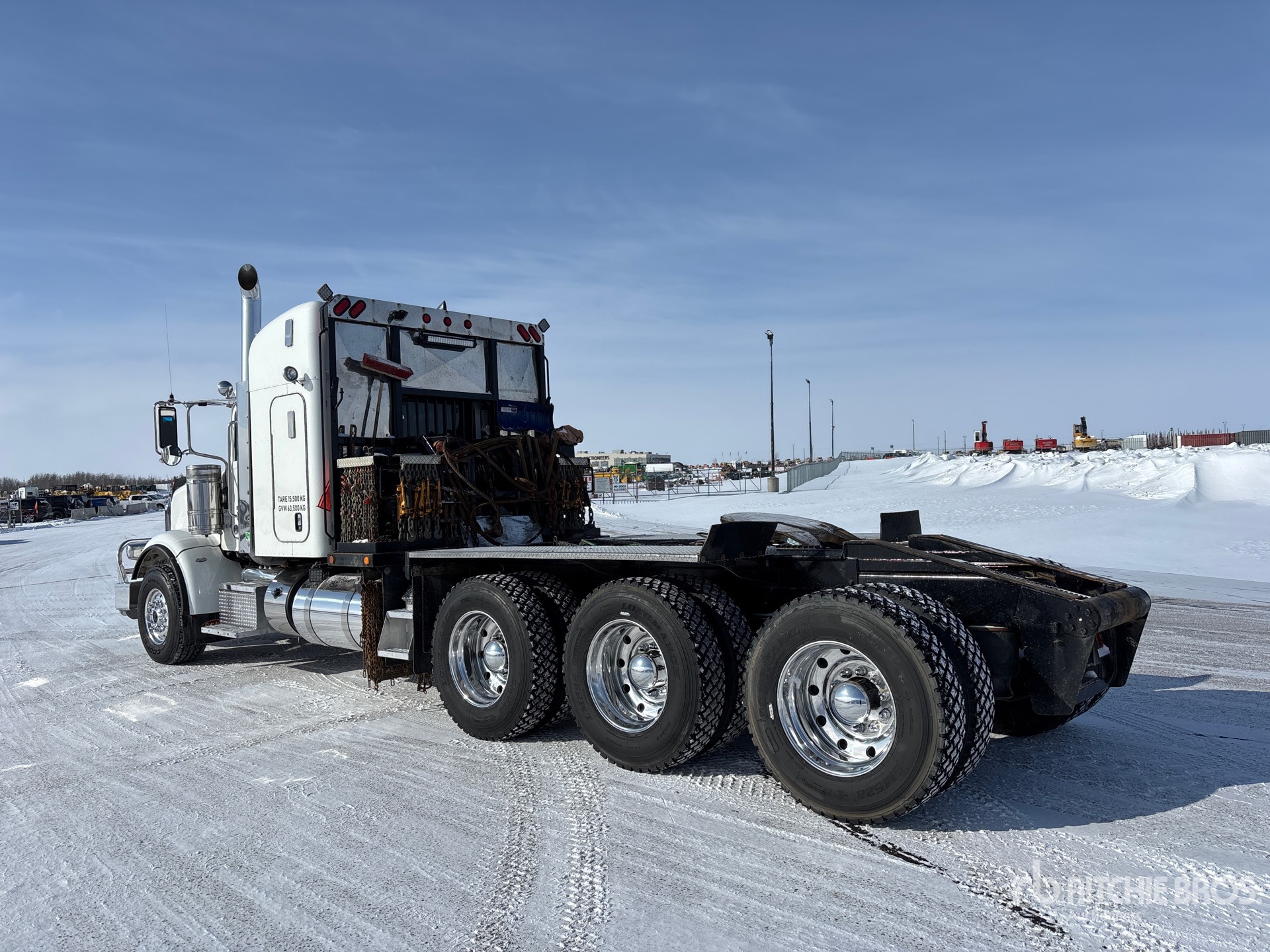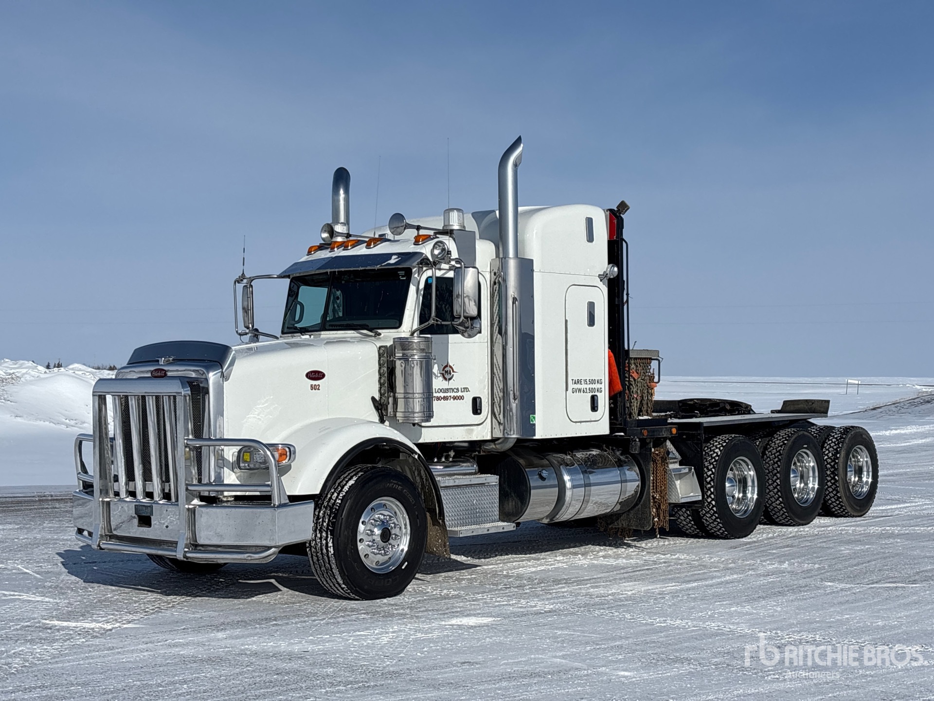 Cummins X15 6 Cylinder 15 L Diesel 565 hp Engine, 2017 US EPA Label, Requires Diesel Exhaust Fluid, Positive Air Shutoff, 19677 Engine hrs, Engine Brake, Eaton Fuller 18-Speed Manual Transmission, Double Differential Locks, 16000 lb Front Axle, 54999 lb Rears, 71000 lb GVWR, Air Ride Cab, 48 in High Rise Sleeper Cab, Aluminum Wheels, 385/65R22.5 Front Tires, 11R24.5 Rear Tires, Dual Steering Boxes, Air Ride Suspension, 268 in Wheelbase, PTO, Live Roll, Tulsa Hydraulic Winch