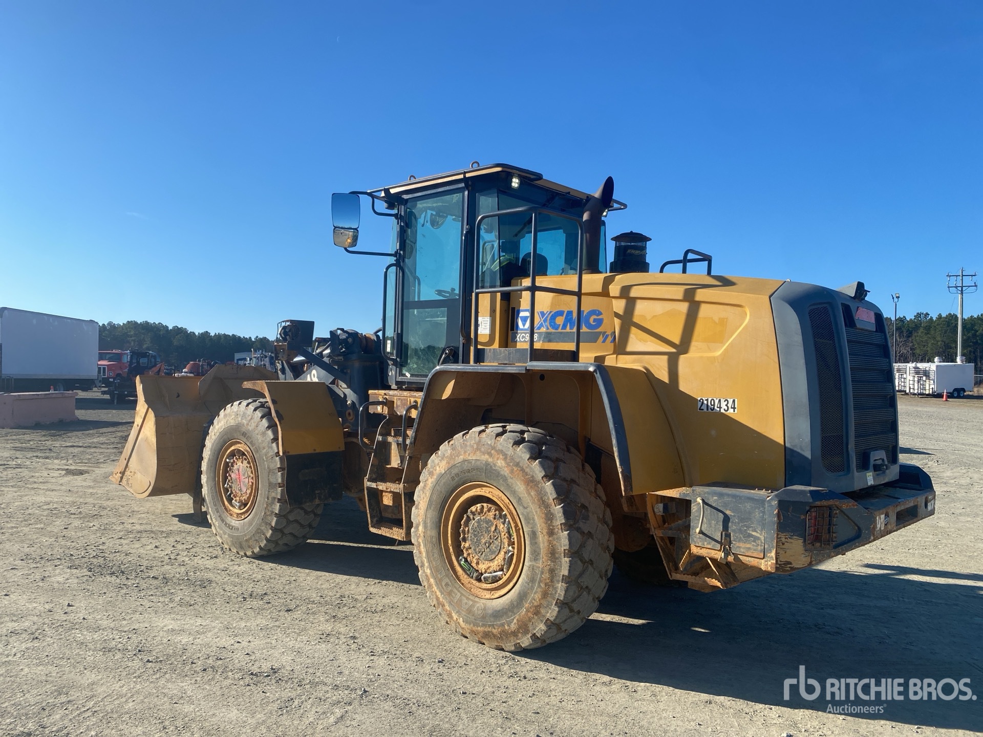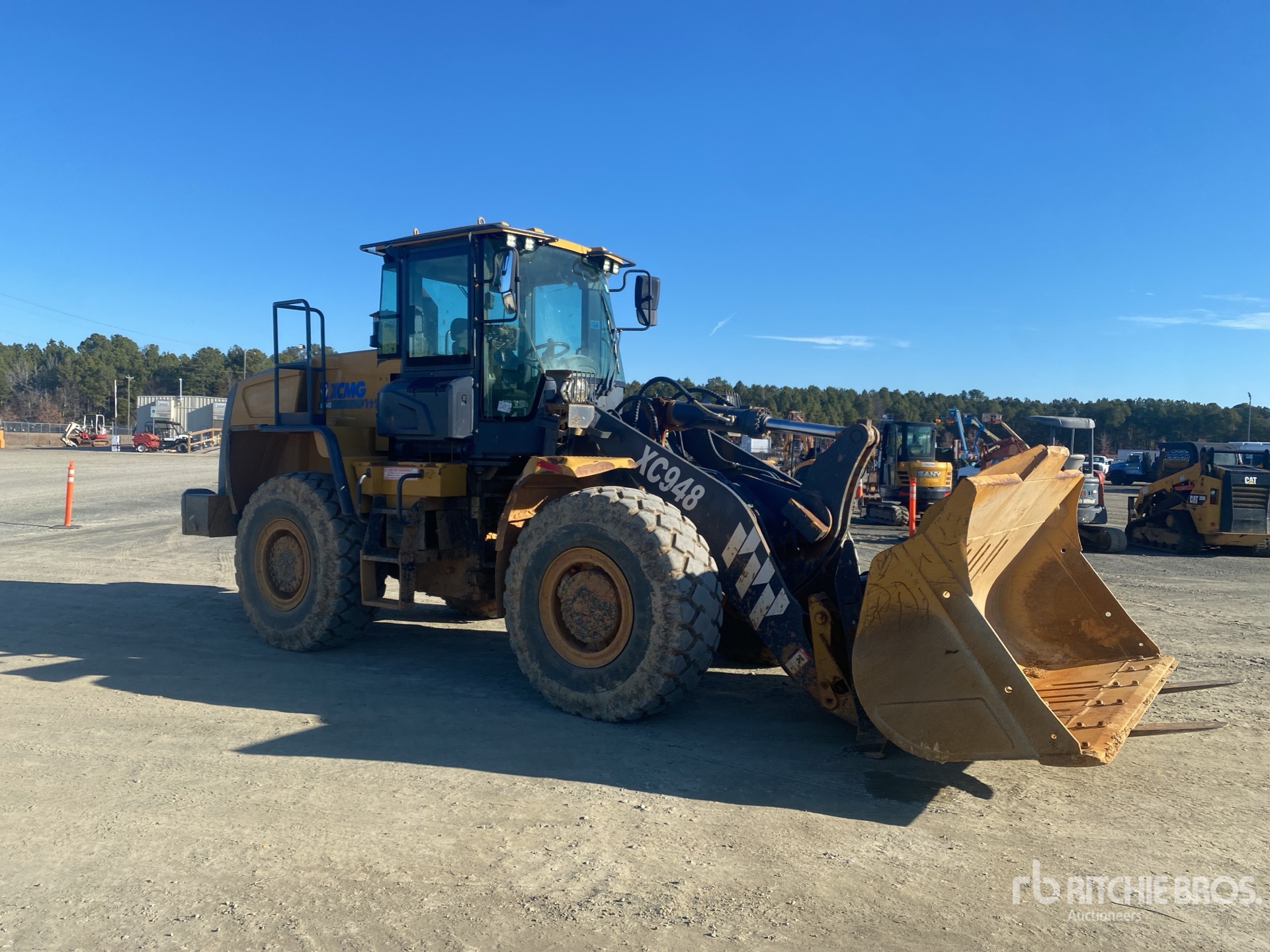 Enclosed Cab, Air Conditioner, Rear View Camera, Hirschmann On-Board Scale, Auxiliary Hydraulics, Hydraulic Coupler, 101 in Bucket, Forks, 20.5R25 Tires