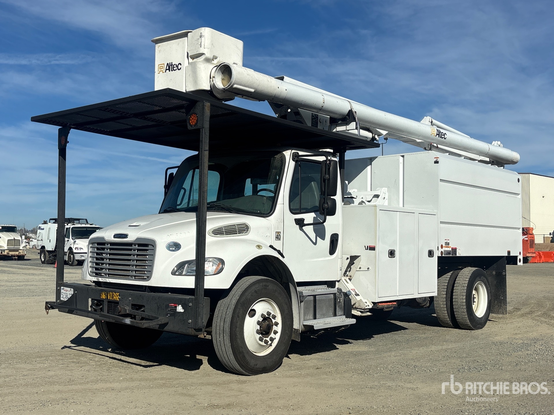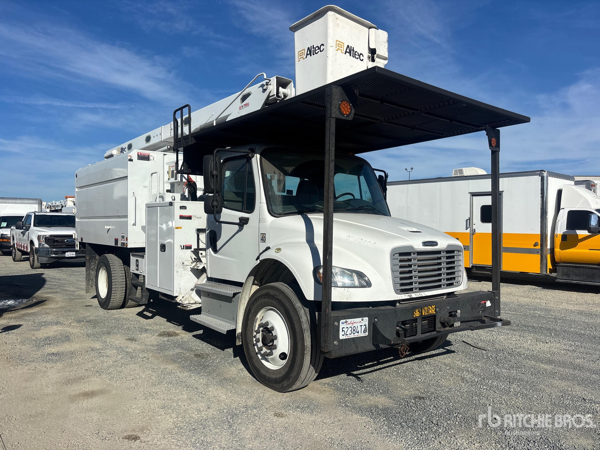 Located in Lane 11 Spot 16, Cummins ISB 6 Cylinder 6.7 L Diesel 240 hp Engine, 2017 US EPA Label, Requires Diesel Exhaust Fluid, 4519 Engine hrs, Eaton Fuller FS-5406A 6-Speed Manual Transmission, Differential Lock, 13220 lb Front Axle, 21000 lb Rears, Meritor MS-21-14X Drive Axles, 4.33:1 Axle Ratio, 33000 lb GVWR, 11R22.5 Front Tires, 11R22.5 Rear Tires, Spring Suspension, 208 in Wheelbase, PTO, 400 lb Capacity, Front Mounted, One-Person Articulated Boom, Chip Body, A-Outriggers, 11 ft x 96 in Bed, Pintle Hitch