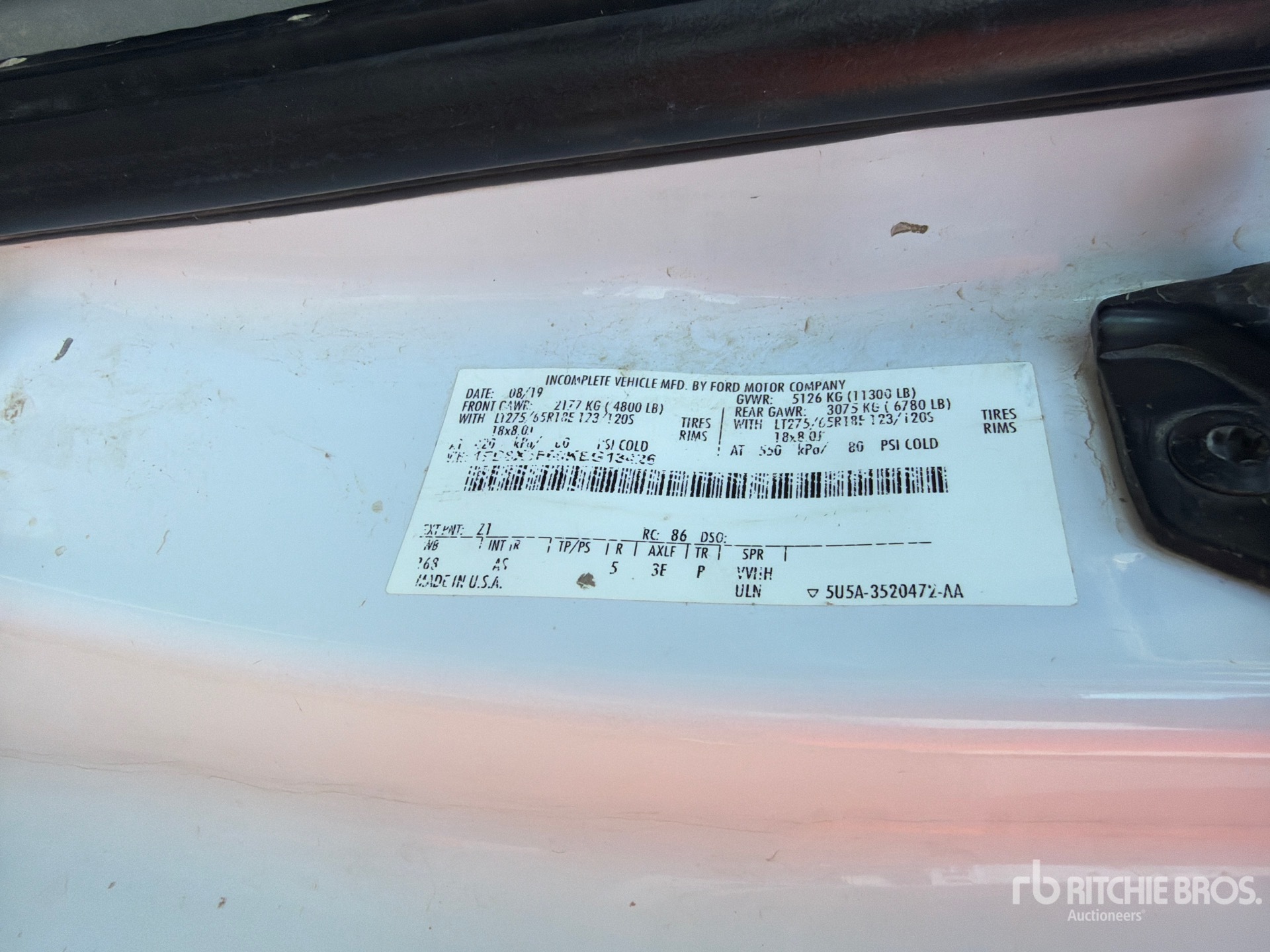 Ford V8 6.2 L Gasoline Engine, 2019 US EPA Label, Automatic Transmission, 4800 lb Front Axle, 6780 lb Rears, 11300 lb GVWR, 275/70R18 Front Tires, 275/70R18 Rear Tires, Spring Suspension, 168 in Wheelbase, Scelzi SBCR-107-79 9 ft 0 in Body
