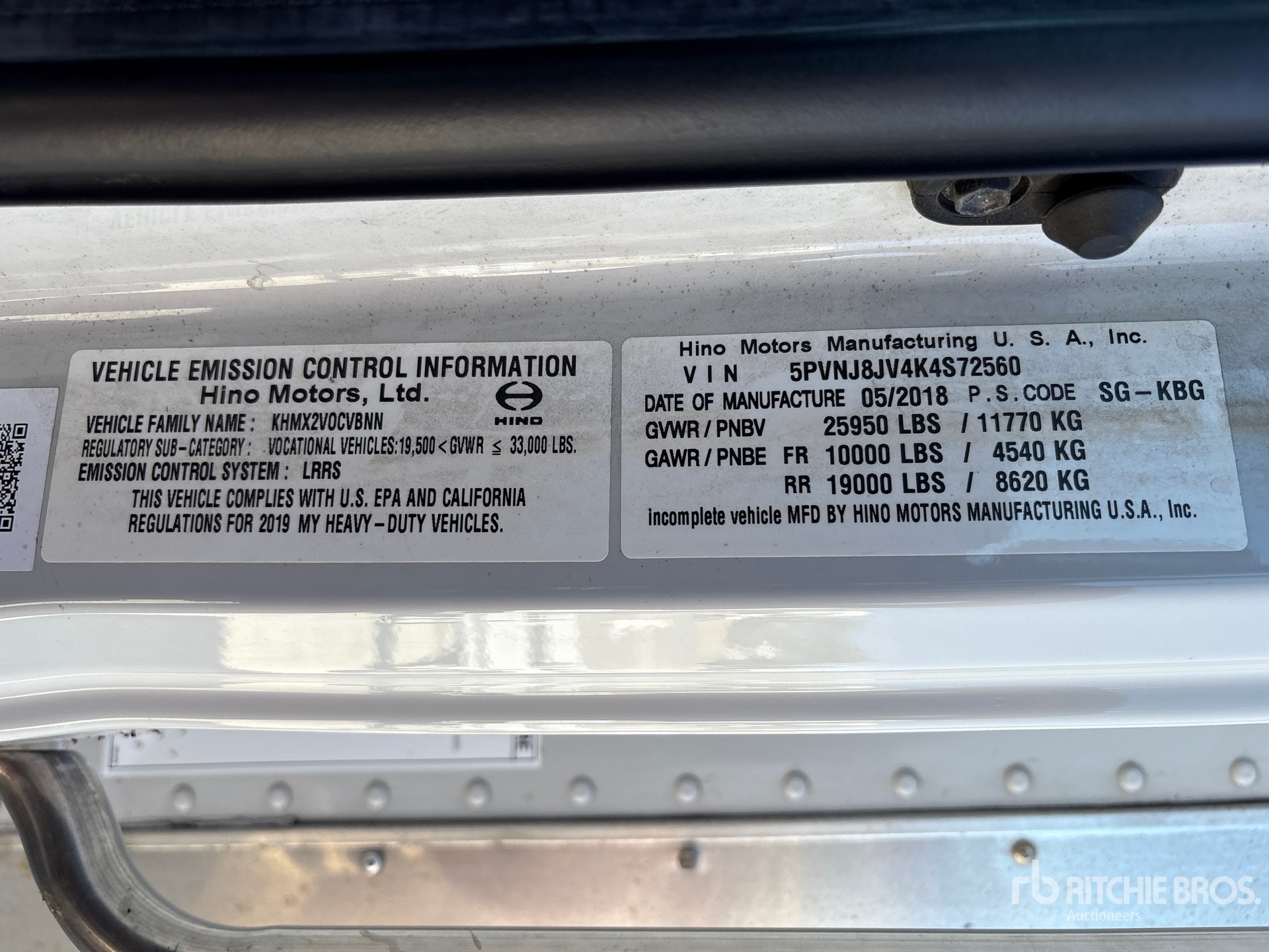 자세한 장비 정보는 범위가 제한되어 있으며, Ritchie Bros. Auctioneers에서는 본 문서에 명시된 항목 이외의 장비 구성요소나 측면에 대해서는 검사하지 않았습니다. 명시적으로 언급하지 않는 한, 당사는 장비 또는 그 구성요소와 관련하여 명시적으로나 묵시적으로 어떠한 진술이나 보증을 제공하지 않습니다. 여기에는 기능, 해당 당국이나 규제 기관의 안전 표준 또는 요구 사항의 준수, 특정 용도 적합성, 상업성 등과 관련된 진술 또는 보증을 포함하되 이에 국한되지 않습니다. 입찰하기 전 장비의 상세한 검사를 실시하도록 강력히 권장합니다.