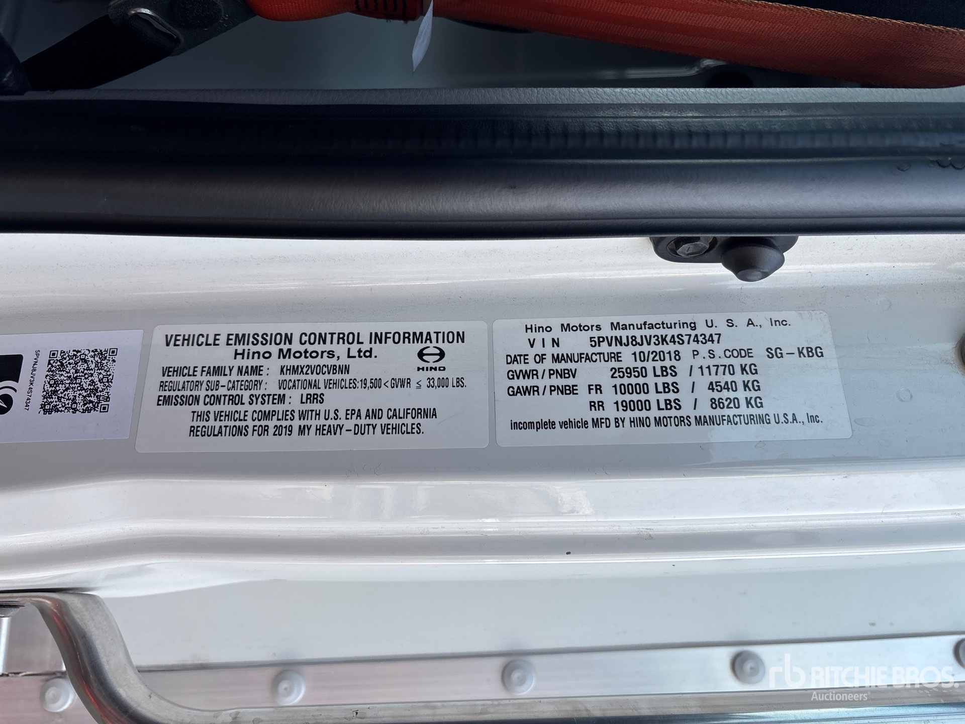 자세한 장비 정보는 범위가 제한되어 있으며, Ritchie Bros. Auctioneers에서는 본 문서에 명시된 항목 이외의 장비 구성요소나 측면에 대해서는 검사하지 않았습니다. 명시적으로 언급하지 않는 한, 당사는 장비 또는 그 구성요소와 관련하여 명시적으로나 묵시적으로 어떠한 진술이나 보증을 제공하지 않습니다. 여기에는 기능, 해당 당국이나 규제 기관의 안전 표준 또는 요구 사항의 준수, 특정 용도 적합성, 상업성 등과 관련된 진술 또는 보증을 포함하되 이에 국한되지 않습니다. 입찰하기 전 장비의 상세한 검사를 실시하도록 강력히 권장합니다.
