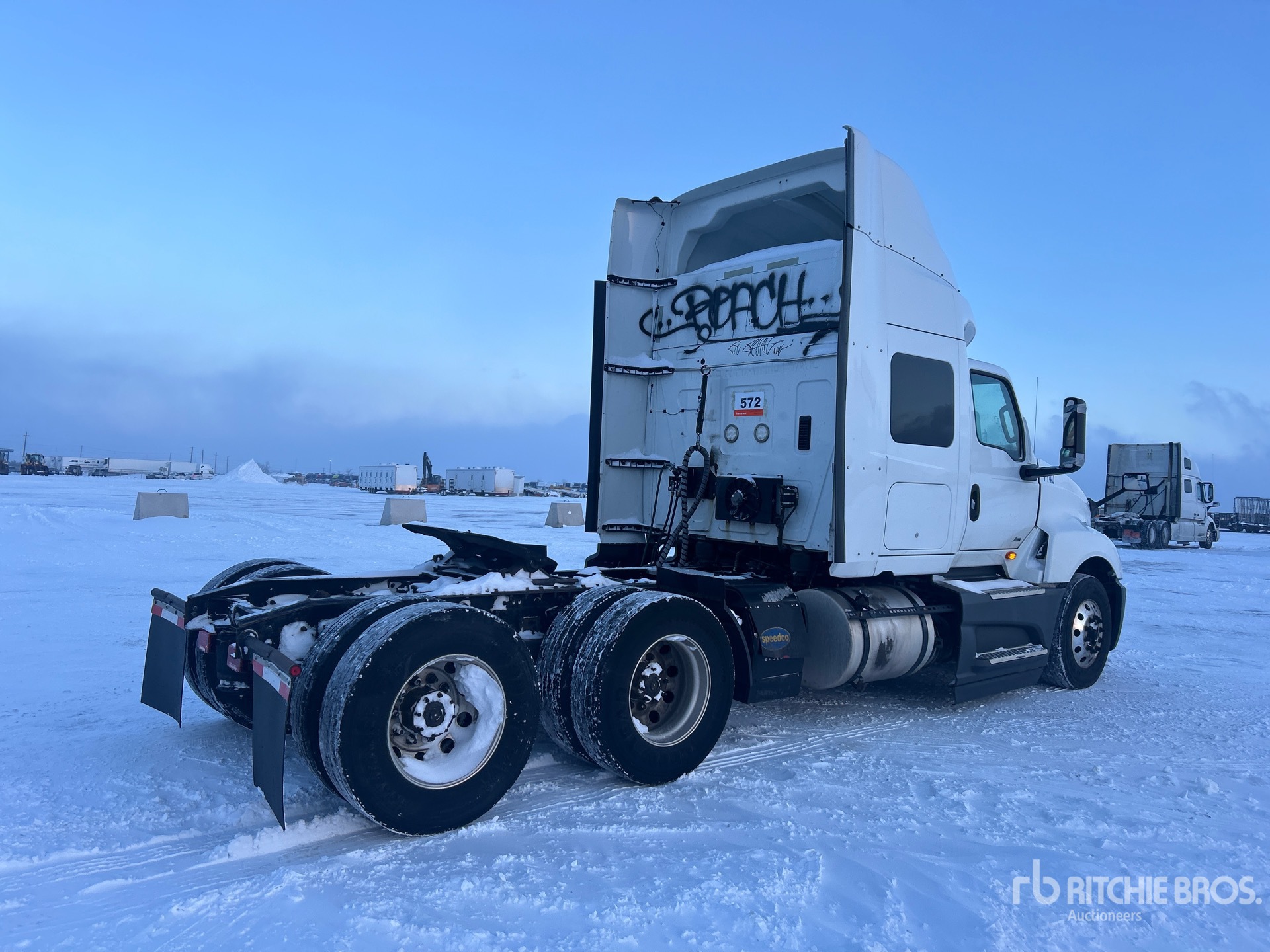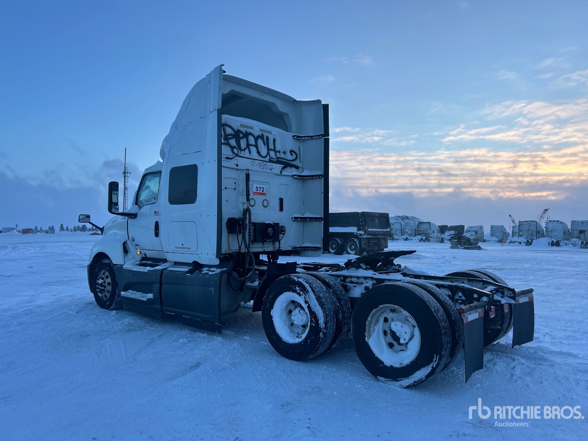Located in Lane 31 Spot 11, International A26 450 hp Engine, 2017 US EPA Label, Automatic Transmission, 13200 lb Front Axle, 40000 lb Rears, 53200 lb GVWR, Engine Brake, 56 in Mid Roof Sleeper Cab, Auxiliary Power Unit, 219 in Wheelbase, Air Suspension, Aluminum Wheels, 295/75R22.5, Air Sliding 5th Wheel, Dual Fuel Tanks
