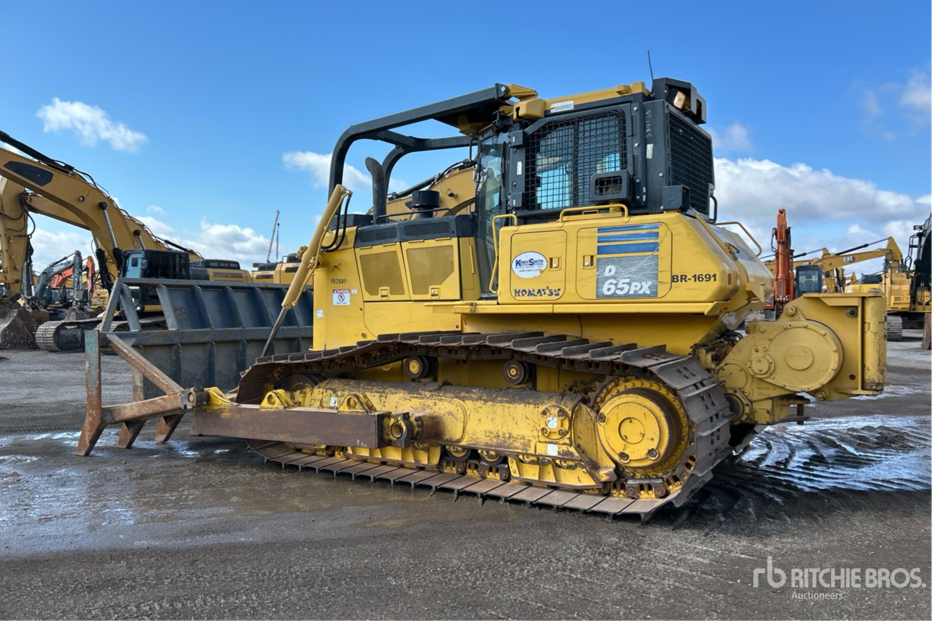 Located in Lane 4 Spot 201, Enclosed Cab, Air Conditioner, Rear View Camera, 2018 US EPA Label, Requires Diesel Exhaust Fluid, Sweeps, 156 in Wide Root Rake, 36 in Single Grouser Track Shoes, PLUS Undercarriage, Carco H65-176VKOMD65-17118 Winch, Drawbar, Rear Auxiliary Hydraulics