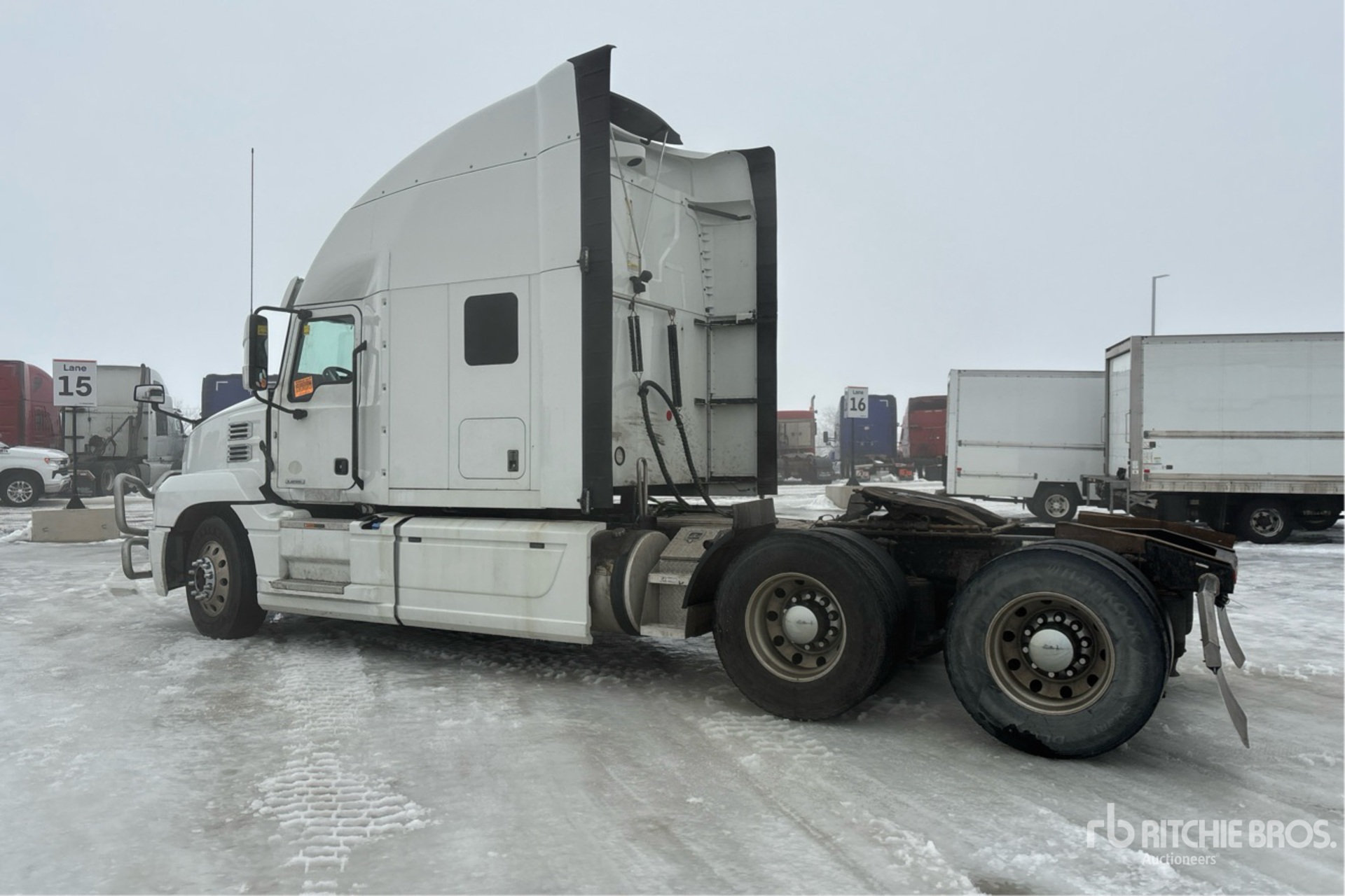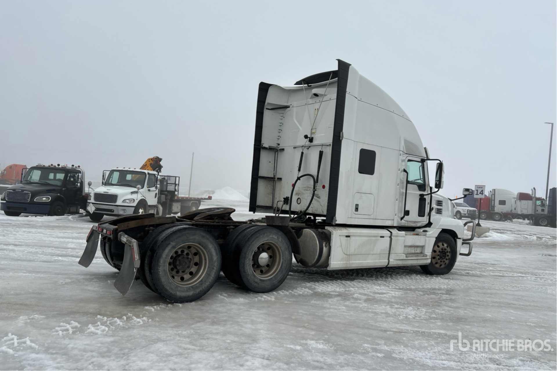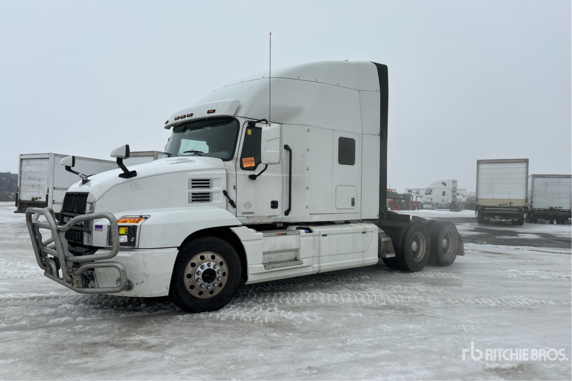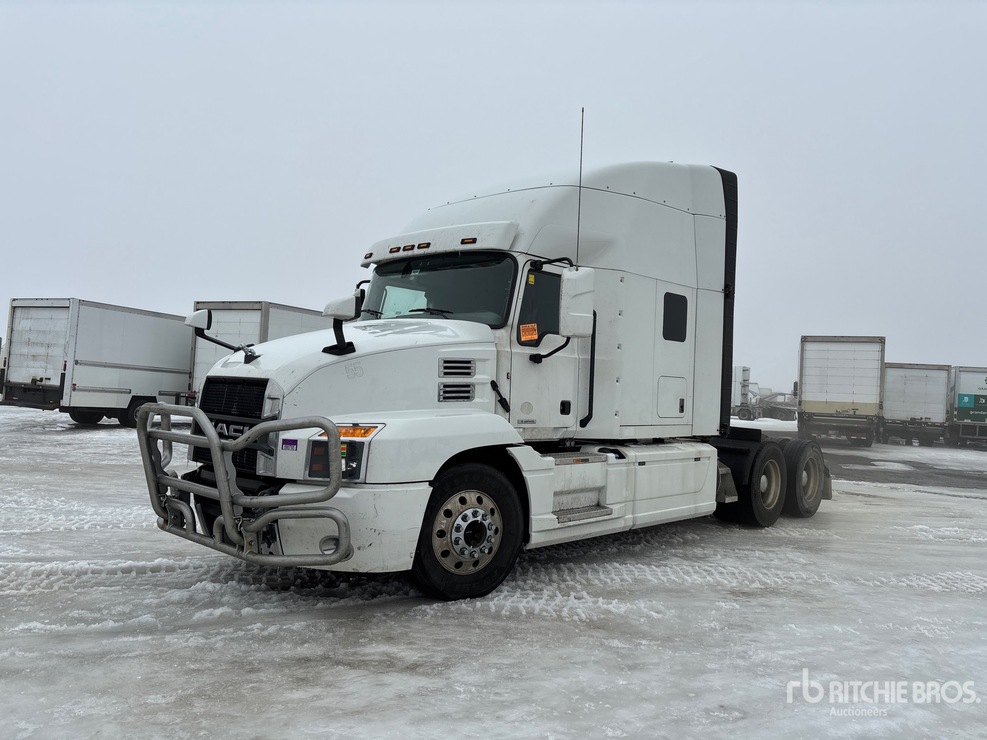 Located in Lane 31 Spot 15, Mack MP8 445 hp Engine, 2019 US EPA Label, 14160 Engine hrs, Mack mDrive 12-Speed Automated Transmission 5997 kg Front Axle, 18200 kg Rears, 24197 kg GVWR, Engine Brake, 60 in High Rise Sleeper Cab, Bunk Beds, 226 in Wheelbase, Air Suspension, Aluminum Wheels, 11R22.5, Air Assist Front Suspension, Air Sliding 5th Wheel, Dual Fuel Tanks
