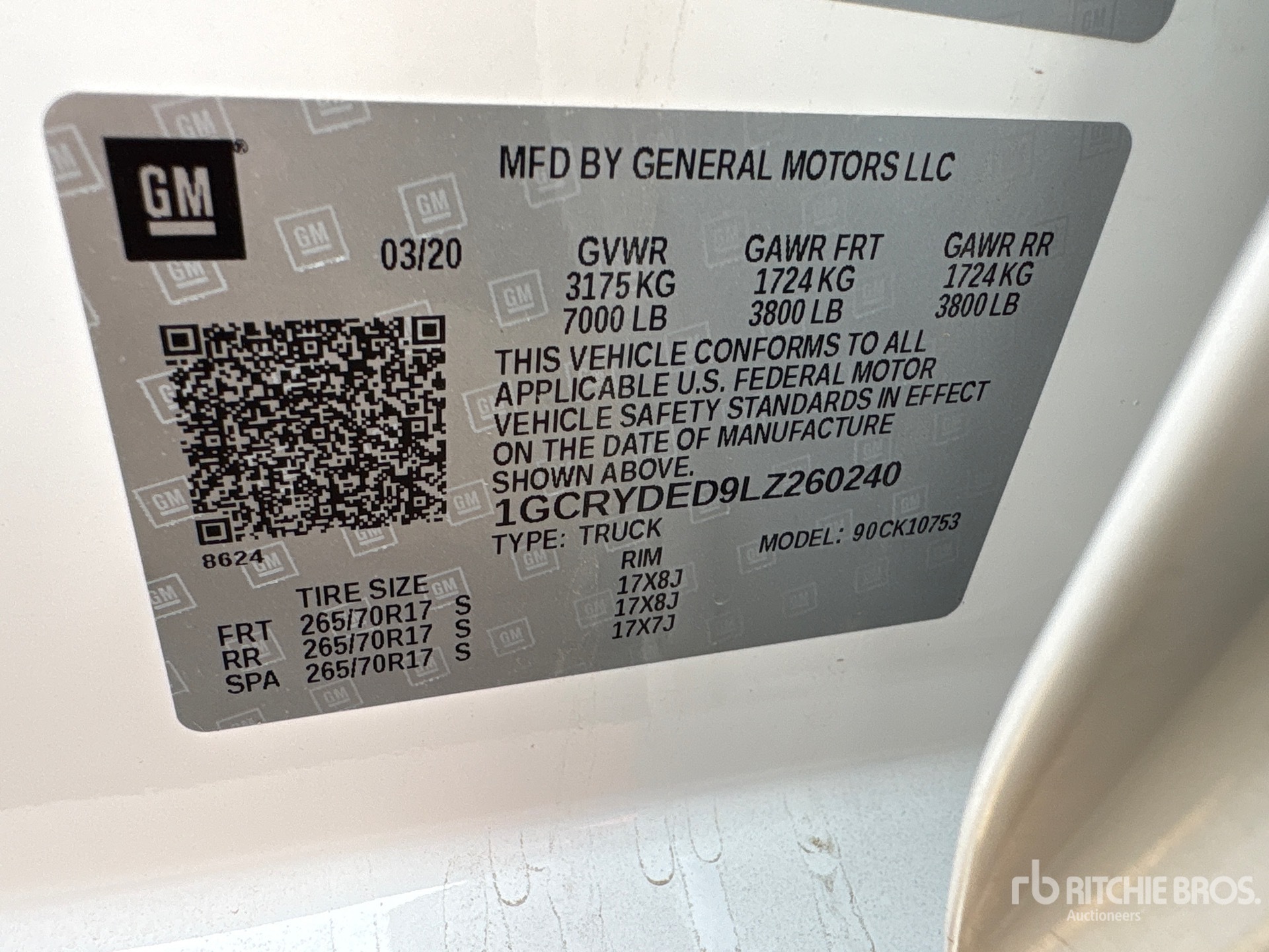 Located in Lane 32 Spot 12, 5.3 L V8 Gasoline Engine, 2020 US EPA Label, Automatic Transmission, Air Conditioner, Power Driver's Seat, Power Windows, Spray-On Bed Liner, 7000 lb GVWR, 265/70R17 Tires, 6 ft 8 in Bed