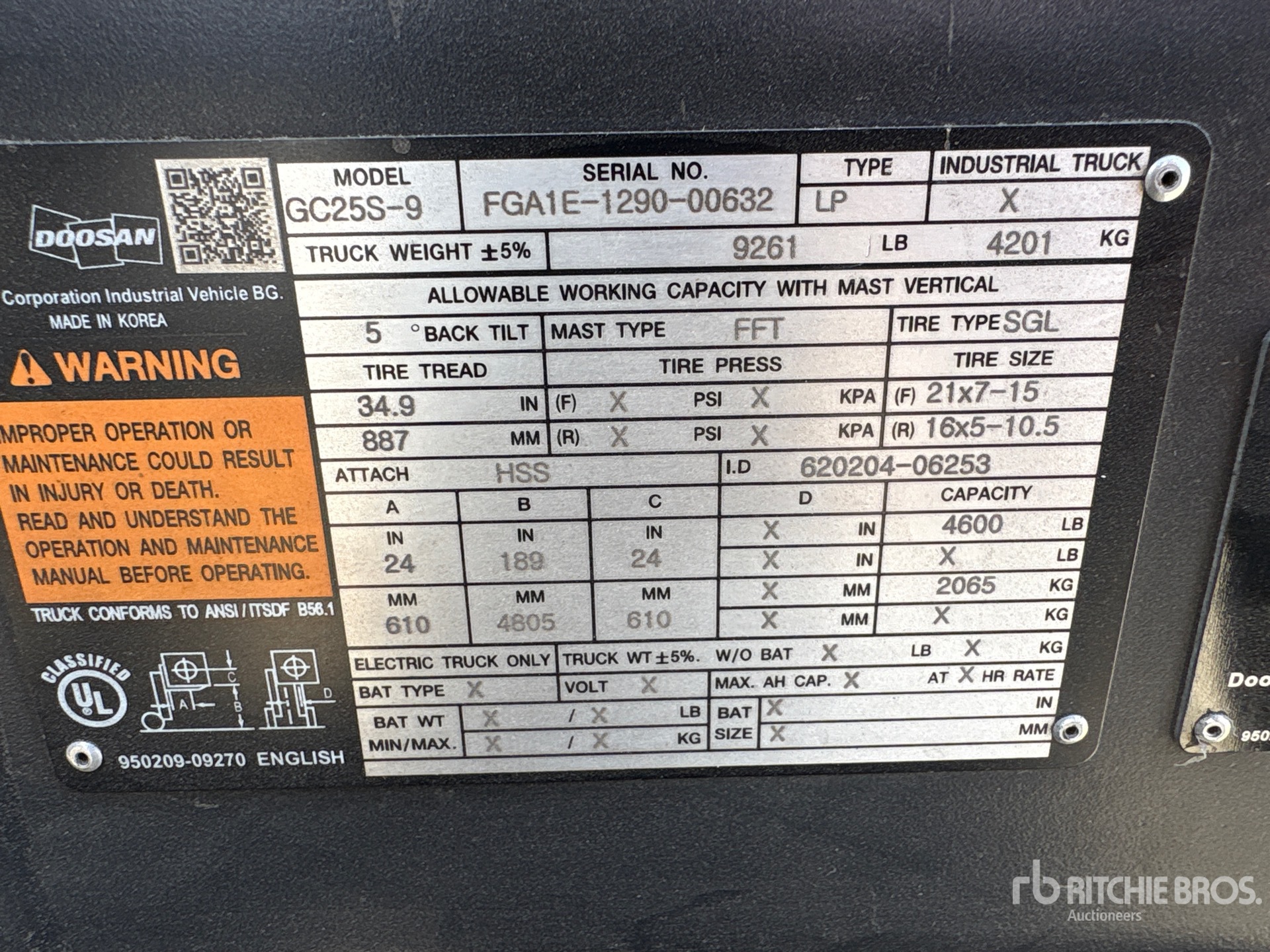 자세한 장비 정보는 범위가 제한되어 있으며, Ritchie Bros. Auctioneers에서는 본 문서에 명시된 항목 이외의 장비 구성요소나 측면에 대해서는 검사하지 않았습니다. 명시적으로 언급하지 않는 한, 당사는 장비 또는 그 구성요소와 관련하여 명시적으로나 묵시적으로 어떠한 진술이나 보증을 제공하지 않습니다. 여기에는 기능, 해당 당국이나 규제 기관의 안전 표준 또는 요구 사항의 준수, 특정 용도 적합성, 상업성 등과 관련된 진술 또는 보증을 포함하되 이에 국한되지 않습니다. 입찰하기 전 장비의 상세한 검사를 실시하도록 강력히 권장합니다.