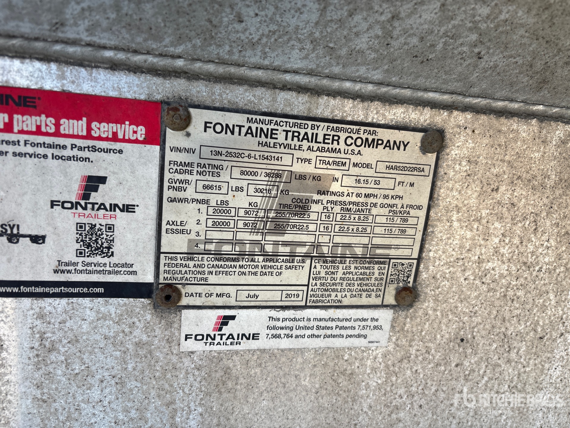 Aluminum Frame, Air Ride Suspension, Sliding Suspension, 11 ft Upper Deck, 42 ft Rear Deck, Aluminum w/Wood Strips Flooring, Aluminum Wheels, 255/70R22.5 Tires, 80000 lb GVWR