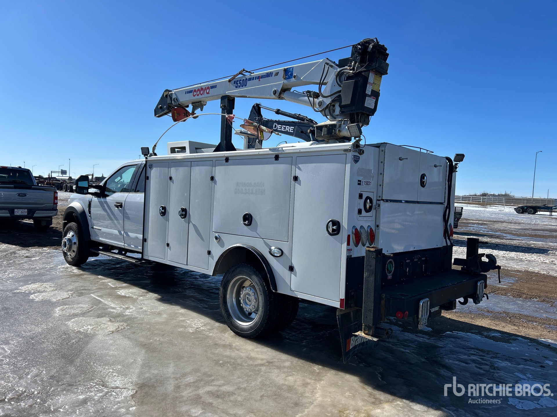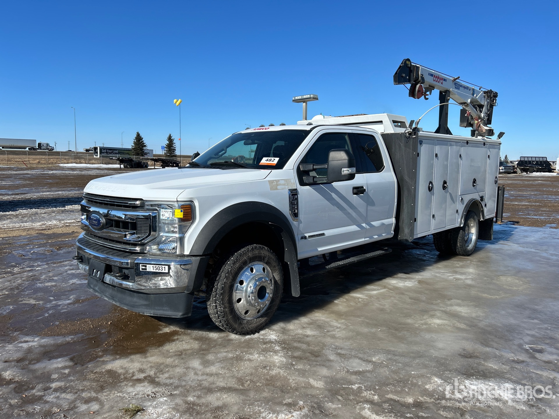 Located in Lane 41 Spot 4, V8 6.7 L Diesel Engine, 2020 US EPA Label, CARB Compliant, 6120 Engine hrs, Automatic Transmission, 6500 lb Front Axle, 14706 lb Rears, 19500 lb GVWR, 225/70R19.5, Spring Suspension, 192 in Wheelbase, 11 ft Body, Manual Stabilizers, Cobra Maxilift 5100 lb 3 Section Hydraulic Crane, Air Hose Reel