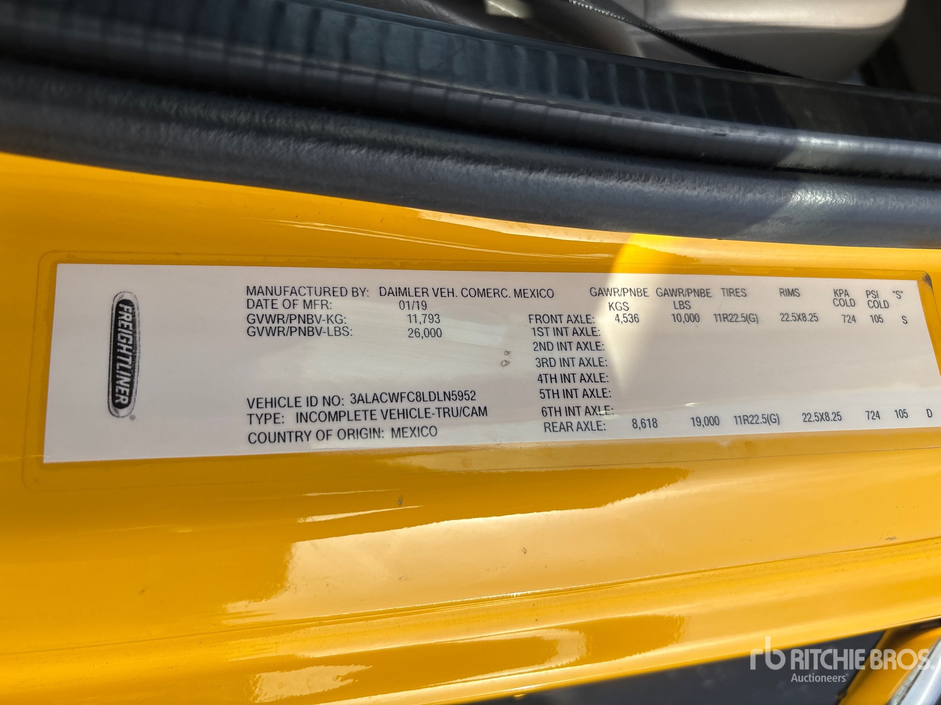 Cummins ISB 6 Cylinder 6.7 L Diesel 220 hp Engine, 2019 US EPA Label, Requires Diesel Exhaust Fluid, Allison 2200 Automatic Transmission, 10000 lb Front Axle, 19000 lb Rears, 5.29:1 Axle Ratio, 26000 lb GVWR, 11R22.5, Airliner Air Ride Suspension, 272 in Wheelbase, 26 ft x 102 in Bed, Liftgate