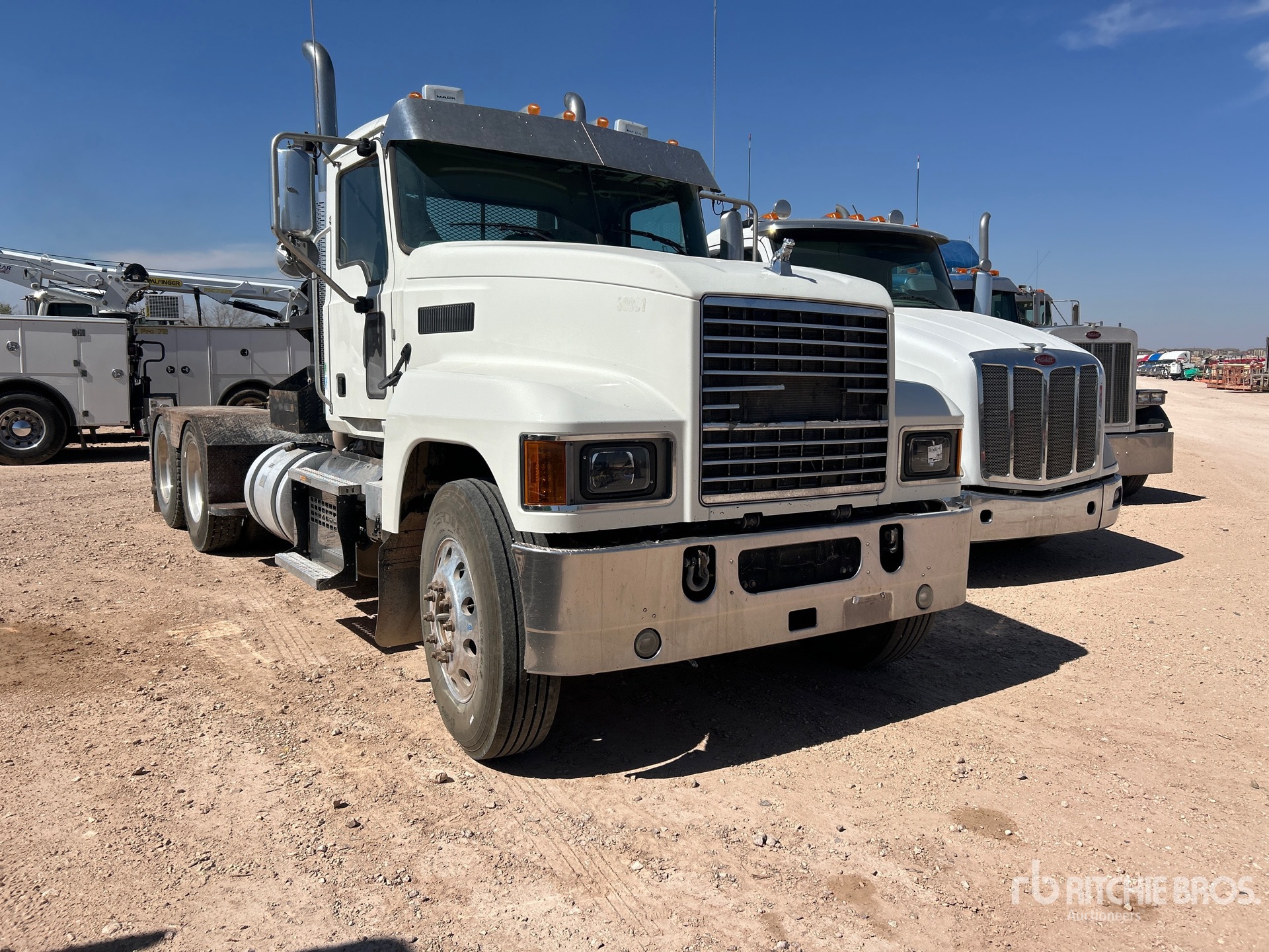 Mack MP8-445C 6 Cylinder 12.8 L Diesel 445 hp Engine, Requires Diesel Exhaust Fluid, 12930.0 Engine hrs, Engine Brake, Mack mDrive 12-Speed Automated Transmission, 12000 lb Front Axle, 40000 lb Rears, 52000 lb GVWR, Aluminum Wheels, 11R24.5, Air Ride Suspension, 214 in Wheelbase, PTO, 14 ft x 102 in Bed, Tail Roll, Braden AMS20-188 21300 lb Winch, Lowboy Ramps