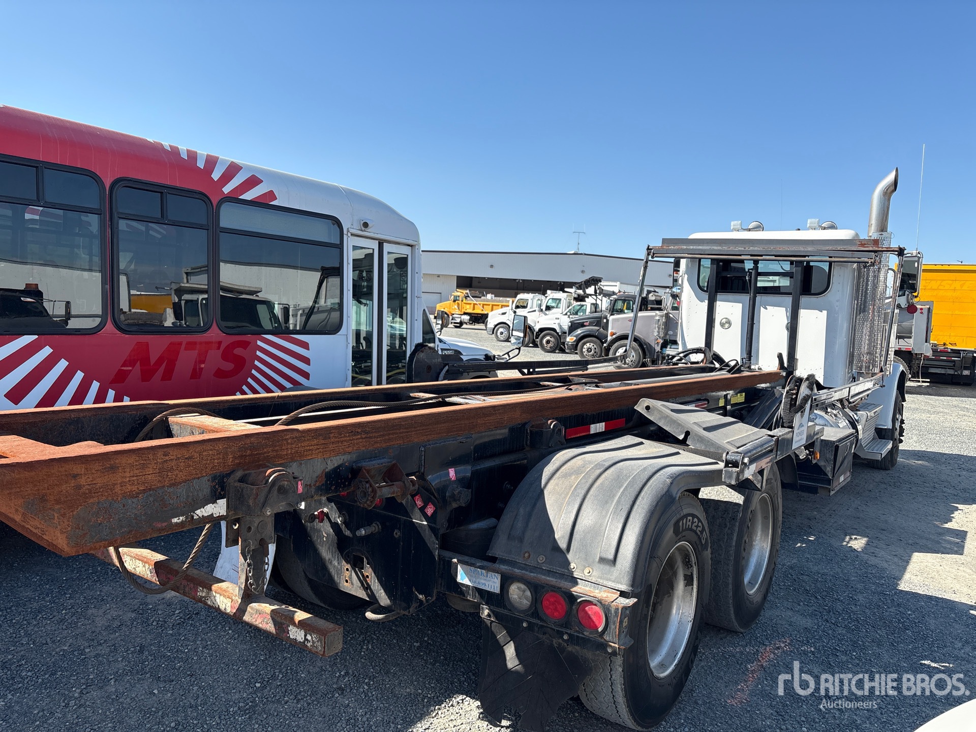 Located in Lane 10 Spot 13, Cummins X15 15 L Diesel 450 hp Engine, 2019 US EPA Label, Requires Diesel Exhaust Fluid, Engine Brake, Eaton Fuller RTLO18913A 13-Speed Manual Transmission, Double Differential Locks, 20000 lb Front Axle, 40000 lb Rears, 3.55:1 Axle Ratio, 60000 lb GVWR, Aluminum Wheels, 315/80R22.5 Front Tires, 11R22.5 Rear Tires, Dual Steering Boxes, Air Trac Suspension, 280 in Wheelbase, Spartan Roll-Off Body, 24 ft Hoist