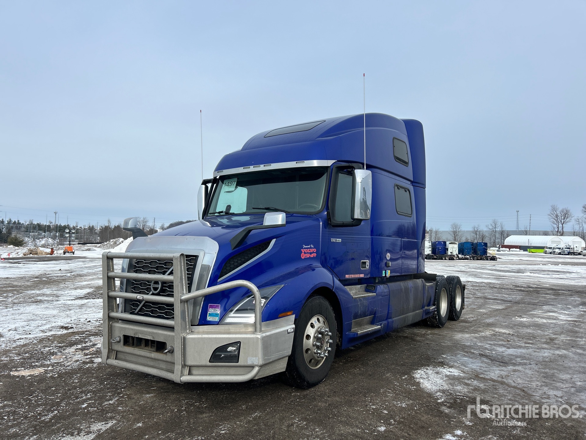 Located in Lane 31 Spot 40, Volvo D13 Engine, 28678 Engine hrs, Volvo ATO2612F 12-Speed Automated Transmission, 12500 lb Front Axle, 40000 lb Rears, 52500 lb GVWR, Engine Brake, Differential Lock, 70 in High Rise Sleeper Cab, Bunk Beds, 218 in Wheelbase, Air Suspension, Aluminum Wheels, 11R22.5, Air Sliding 5th Wheel, Dual Fuel Tanks